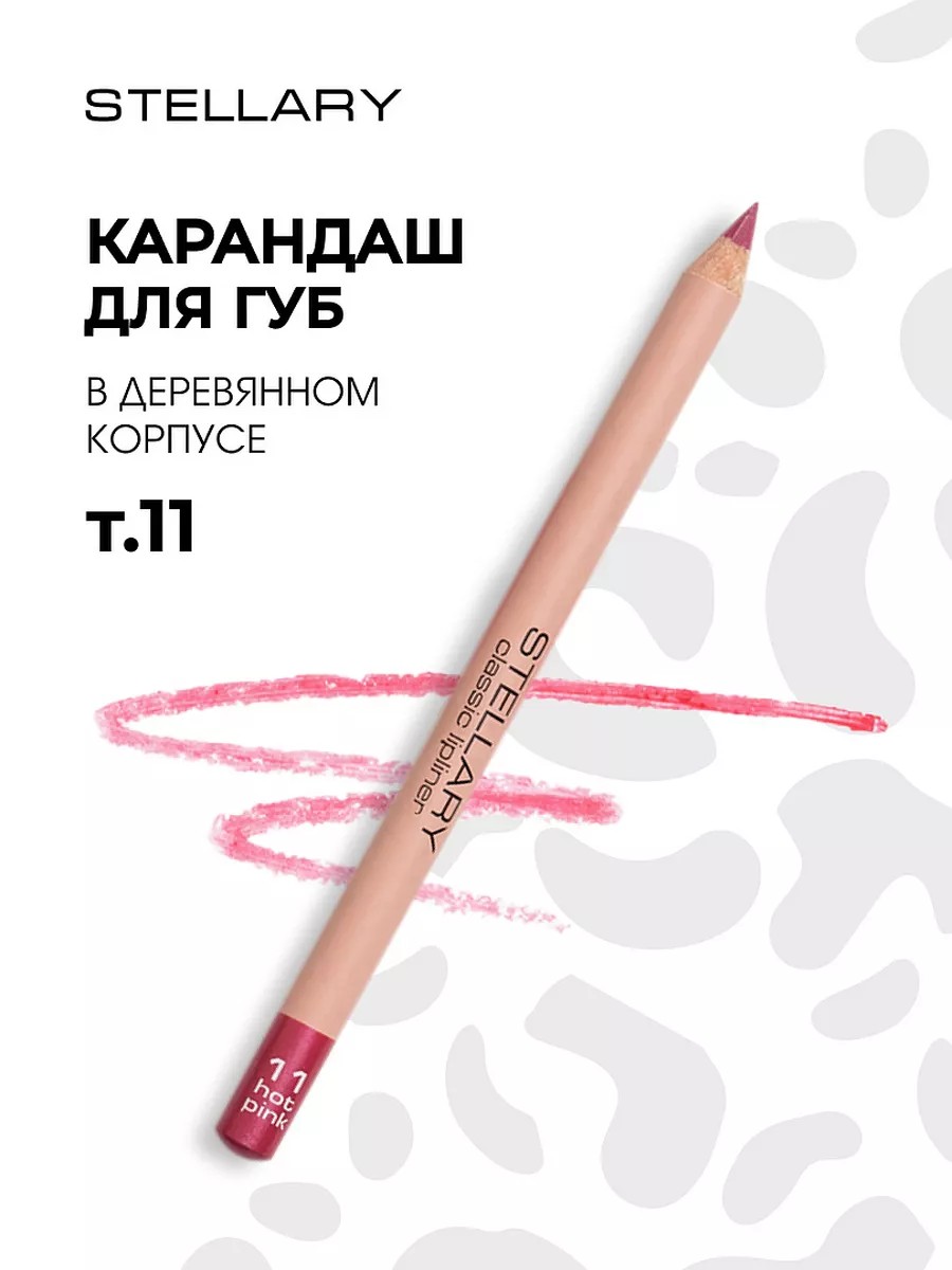 Карандаш для губ матовый в деревянном корпусе для создания яркого насыщенного контура. Идеально подходит как для четких, так и для растушеванных линий, а также для нанесения на всю поверхность губ. Высокое содержание пигмента делает макияж с карандашом устойчивым, а цвет насыщенным. Пчелиный и карнаубский воски в составе формулы обеспечивают равномерное нанесение. Карандаш для губ нюд Stellary предотвращает растекание помады за контур. Карандаш для губ розовый Stellary Lip Pencil 11 Hot Pink - идеальный выбор для ярких и смелых образов. Этот ярко-розовый оттенок прекрасно подойдет для обладательниц светлой кожи и добавит акцента вашему макияжу. Благодаря высокому качеству пигмента карандаш обеспечивает яркий и стойкий цвет губ. Пчелиный и карнаубский воски в его составе защищают губы от сухости и обеспечивают равномерное распределение цвета. Деревянный корпус гарантирует комфортное использование карандаша, а Stellary предотвращает растекание помады, сохраняя идеальный контур губ на протяжении всего дня.