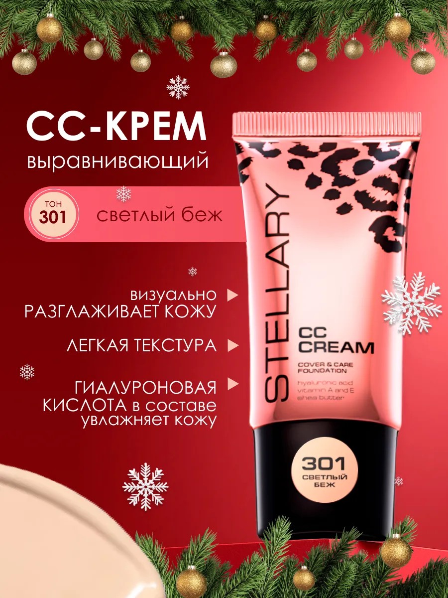 СС-крем Stellary с улучшенной формулой выравнивает рельеф кожи и преображает ее. Легкая кремовая текстура помогает справиться с несовершенствами. Гиалуроновая кислота в составе формулы активно увлажняет, придает коже здоровый ухоженный вид и легкое сияние. Крем улучшает цвет лица и защищает кожу от преждевременного старения. У него легкое покрытие, которое почти не ощущается на лице. Тон крема подстраивается под естественный цвет вашей кожи. В ассортименте четыре тона СС-крема натуральной гаммы от светлого бежевого до оттенка легкого загара. Подходит для нормальной, склонной к сухости и обезвоженной кожи.