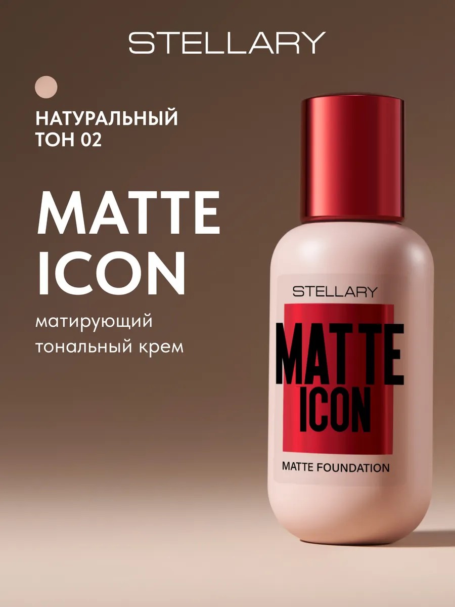 Откройте для себя новое средство в мире косметики — наш профессиональный матирующий тональный крем MATTE ICON со стойкой укрывистой текстурой, который станет незаменимой основой для вашего макияжа. Тон 02 натуральный. Этот крем обеспечивает вашей коже великолепный матирующий эффект на весь день. У крема высокопигментированная текстура, при этом легкая и комфортная, которая абсолютно не ощущается на коже. Крем содержит пантенол и витамин Е для ухода за кожей. Пантенол увлажняет, смягчает и разглаживает кожу. Антиоксидант витамин Е защищает от преждевременного старения и негативного воздействия окружающей среды, замедляет образование морщин, помогает удерживать влагу в коже. Тональный крем MATTE ICON представлен в четырех оттенках: 01 натурально - светлый, 02 натуральный, 03 натурально - бежевый, 04 бежевый. СПОСОБ ПРИМЕНЕНИЯ: Используйте в сочетании с праймером и рассыпчатой пудрой STELLARY для длительного матового эффекта. Наносите кистью STELLARY PRO 138 для более плотного покрытия или влажным профессиональным спонжем STELLARY для тонкого натурального покрытия. С помощью нашей базы и праймера вы сможете создать идеальный тон лица.