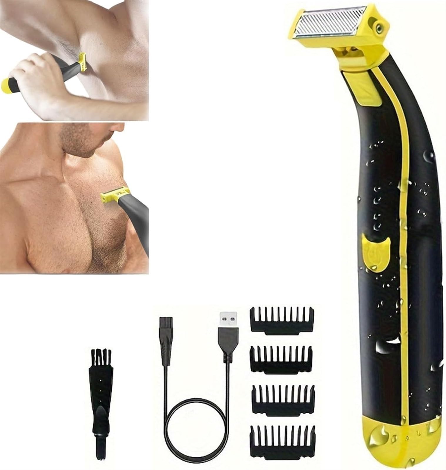 Stellaya Shaver Full Body Washed Wet and Dry Shaver Electric Body Hair Trimmer for Men Waterproof Male Hygiene Razor with 4 Types of Limited-Length Combs Waterproof Male Razor(1pcs) 1pcs Yellow