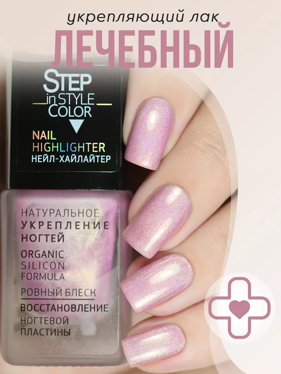 Лечебный лак для ногтей «Step in Style» Nail Highlighter 12 - розово-фиолетовая основа с перламутром, легко наносится и отлично смотрится на ногтях любой длины и формы. Его текстура обеспечивает равномерное покрытие и быстро высыхает на воздухе как обычный лак – без лампы. Вы легко сможете привести руки в порядок в домашних условиях, не тратя время на походы в салон. Лечебное покрытие «Step in Style» с цветом обеспечивает надежную защиту, постепенное укрепление и бережное восстановление, а также стимулирует естественный процесс роста ногтя. Формула содержит укрепляющие компоненты с доказанной эффективностью, которые уплотняют хрупкую, поврежденную ногтевую пластину и возвращают ей гибкость и здоровый блеск. Для комплексного ухода и восстановления используйте продукт курсом, регулярно нанося его на протяжении месяца.