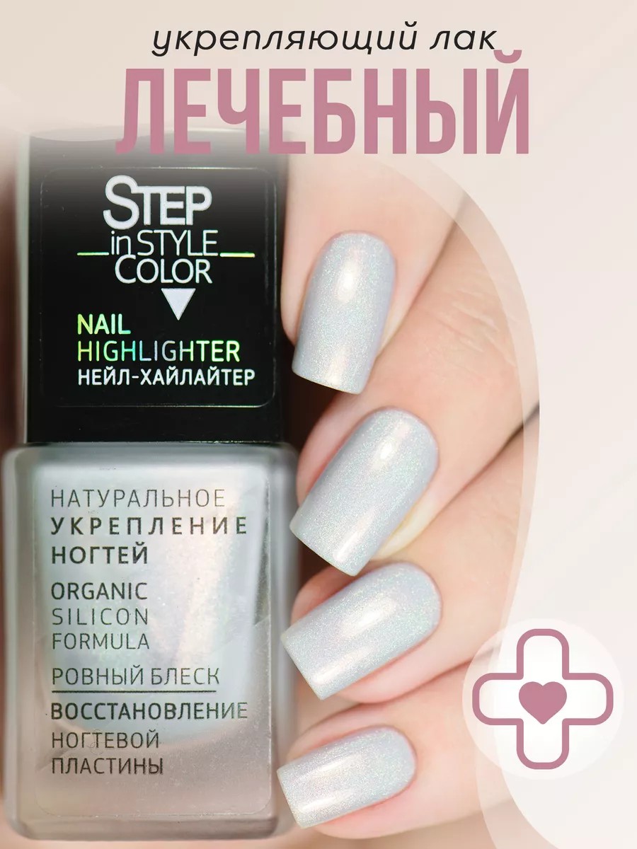 Лечебный лак для ногтей «Step in Style» Nail Highlighter 10 - серебристая основа с голографическими искрами, легко наносится и отлично смотрится на ногтях любой длины и формы. Его текстура обеспечивает равномерное покрытие и быстро высыхает на воздухе как обычный лак – без лампы. Вы легко сможете привести руки в порядок в домашних условиях, не тратя время на походы в салон. Лечебное покрытие «Step in Style» с цветом обеспечивает надежную защиту, постепенное укрепление и бережное восстановление, а также стимулирует естественный процесс роста ногтя. Формула содержит укрепляющие компоненты с доказанной эффективностью, которые уплотняют хрупкую, поврежденную ногтевую пластину и возвращают ей гибкость и здоровый блеск. Для комплексного ухода и восстановления используйте продукт курсом, регулярно нанося его на протяжении месяца.