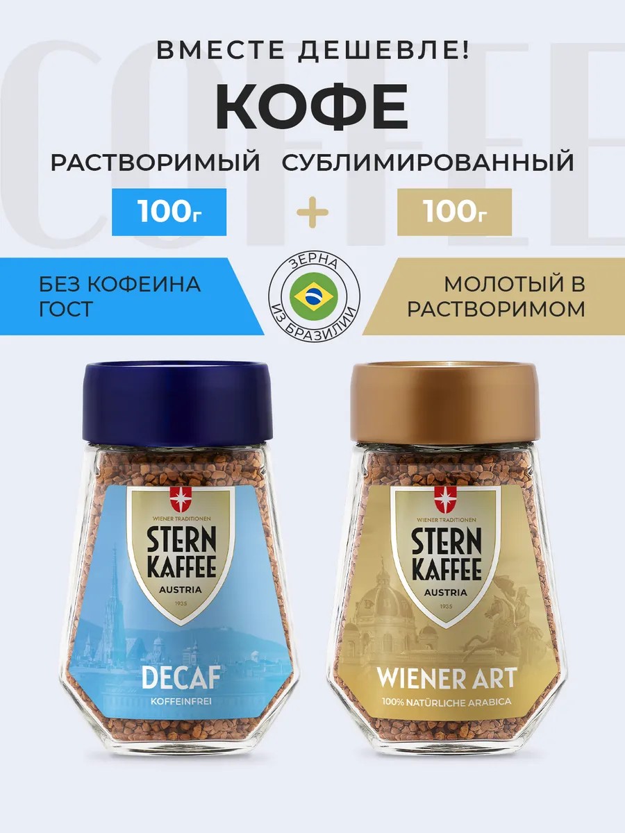 Вкусный и ароматный кофе - идеальный напиток для каждого дня и средство для борьбы с сонливостью. Набор растворимого кофе SternKaffee из двух банок сочетает в себе два особенных вида кофе - мягкий без кофеина и классический с кофеином, чтобы удовлетворить все ваши предпочтения. Эти сублимированные продукты в банках по 100 грамм с изысканным вкусом и ароматом не требуют сложного приготовления - добавьте одну чайную ложку кофе в чашку, залейте горячей водой и наслаждайтесь! Набор включает натуральный молотый кофе арабика в растворимых гранулах ( классический сублимированный кофе ). Также в него входит мягкий кофе без кофеина, оба варианта представлены в банках весом по 100 грамм. Необычный набор из двух банок в коробке, 2в1, позволит вам попробовать разные варианты обжарки - средней или светлой, с ароматизаторами ( ароматизирован натуральным молотым ) или без. Наслаждайтесь легкой нежной крепостью любимого напитка. Полезный свежий кофе элитного сорта в стеклянной банке подойдет для подарка на день рождения и другие праздники. Такой набор в баночках оригинальной формы Штерн кафе- это большой хороший новогодний подарок, который подойдет как для мужчин, так и для женщин. Изысканный кофе Штерн обеспечит истинный вкус Бразилии в каждой чашке. Декофеинизированный или классический кофе премиум - качества для заваривания в кружке в упаковке из 2 баночек станет отличным презентом родителям или взрослым детям. Это отличный подарок для мамы, папы и друзей. Качественные напитки из коллекции бренда относятся к продуктам питания, считающимся классикой. Такие товары идеально подойдут для пополнения вашей коллекции любимых напитков. Набор поставляется в стандартной транспортировочной коробке. Отлично подойдет в качестве подарка на Новый год!
