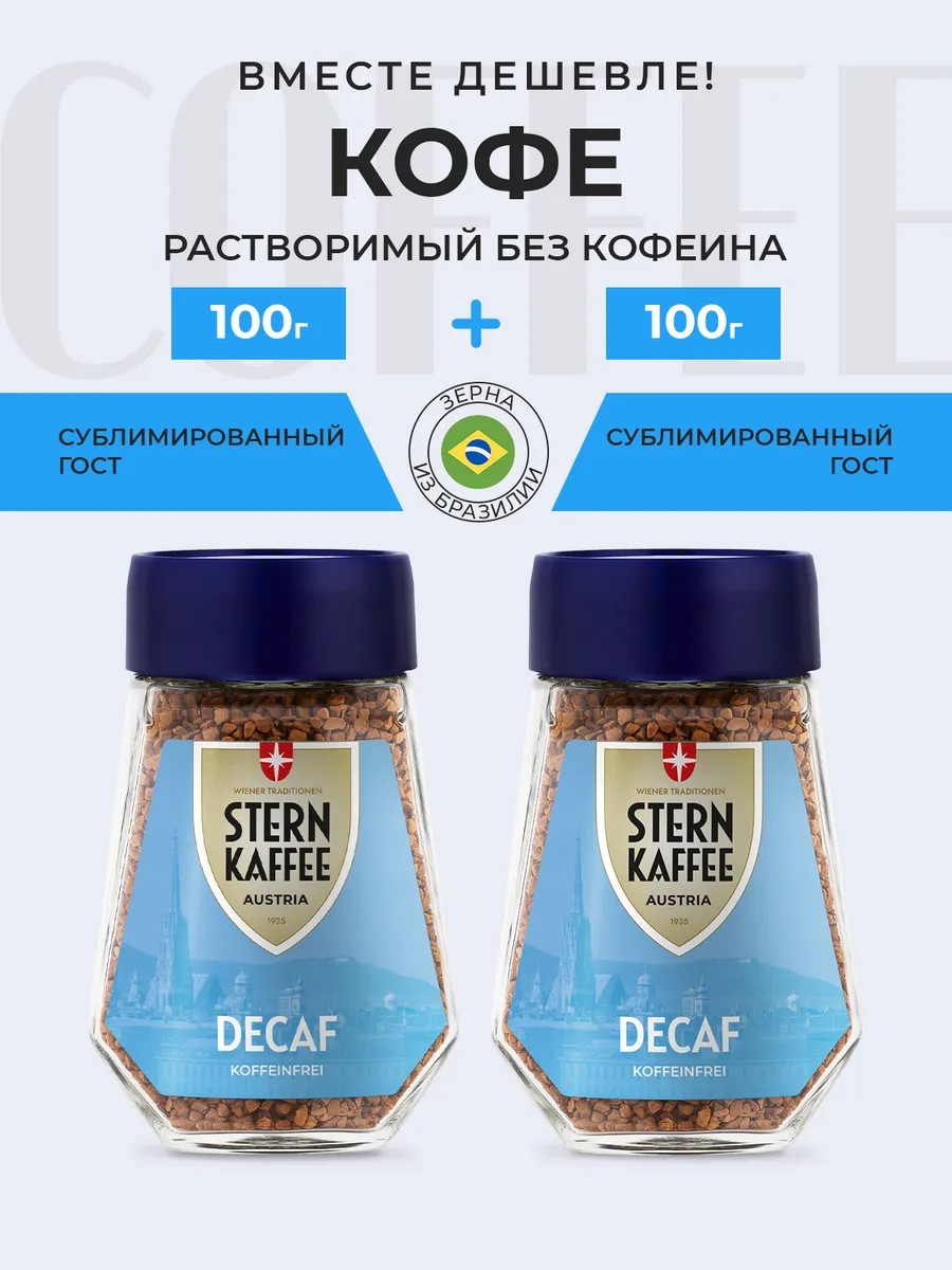 Растворимый сублимированный кофе без кофеина 2 банки по 100г