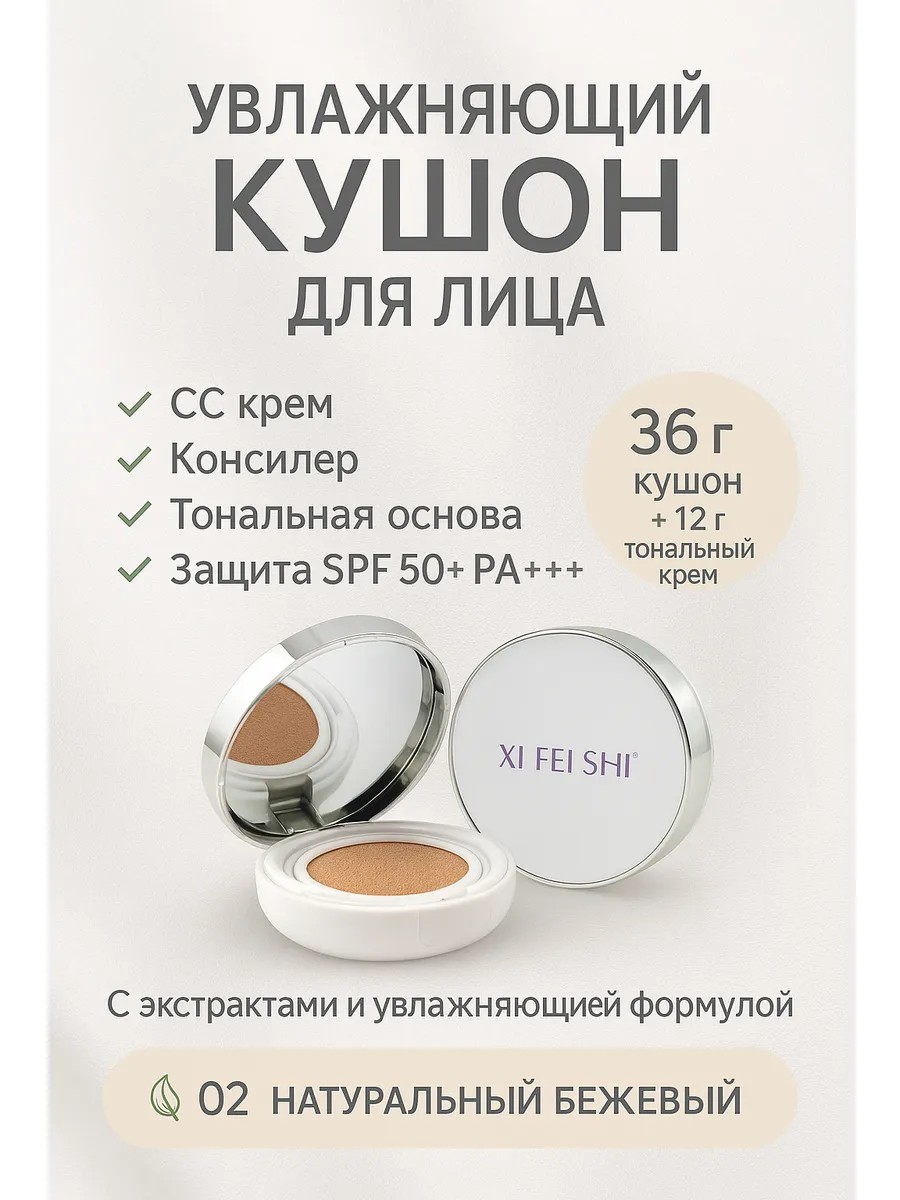 Кушон для лица Xi Fei Shi Air Cushion CC Cream — это современное решение для безупречного макияжа и ухода за кожей. Лёгкая текстура тонального крема с эффектом сияния обеспечивает естественное покрытие без маски, скрывая несовершенства и выравнивая тон. В набор входит кушон и жидкий тональный крем с SPF 50+ PA+++, что защищает кожу от ультрафиолета и продлевает стойкость макияжа. Благодаря удобной пуховке средство равномерно распределяется и подходит для любого типа кожи. Косметика для макияжа бренда Xi Fei Shi создаёт комфортное ощущение, увлажняет и ухаживает за лицом. Корейская косметика славится инновационными формулами, и данный CC крем подтверждает это — он отлично подстраивается под оттенок кожи, не забивает поры и остаётся стойким весь день. Такой кушон для лица Корея станет незаменимым помощником в ежедневном уходе и макияже, идеально подойдёт для женщин, ценящих качество и натуральность.