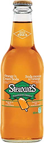 Oranges cream: Stewart's introduced orange n' Cream to the super premium gourmet soda world in 1995. Many companies have tried to copy the rich orange and cream blend but nothing comes close to the original. Stewart's orange n' Cream tastes great, is completely non-dairy and makes the best ice cream floats in the world. Pop open a Stewart's beverage and experience the good old times all over again.Kosher, caffeine dairy free. Made with real cane sugar. True authentic flavours since 1924. Then. Again. Stewarts soda offers six-great tasting flavoured fountain beverages. Creamy orange taste 24 355ml gls bottles.
