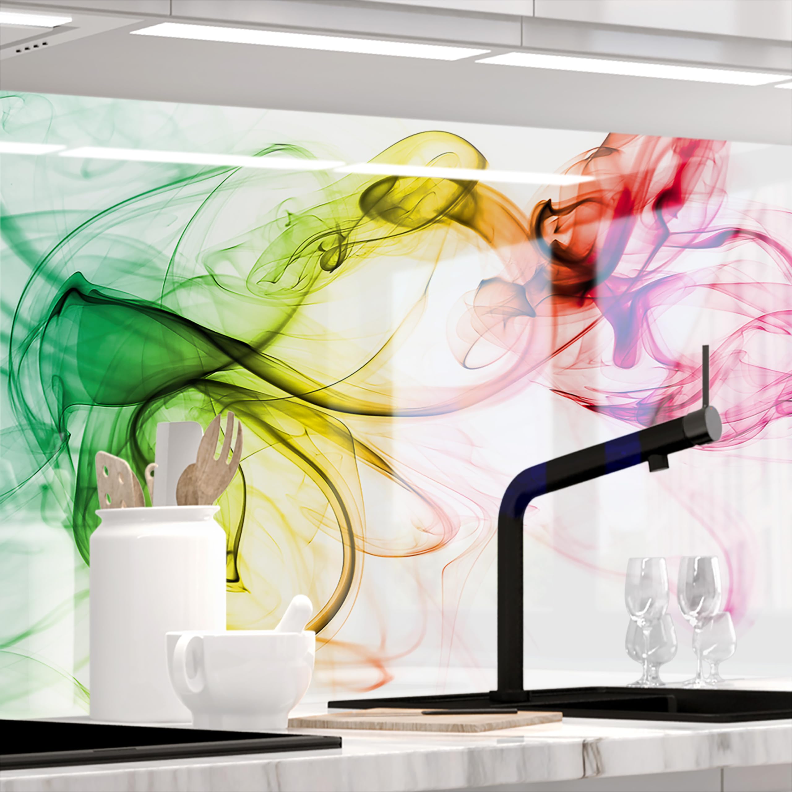 Sticker professionals kitchen back wall self -adhesive glass look - colorful smoke - 1.8mm stiffened all substrates hard pet material premium 60 x 80cm h 60 cm x W 80 cm colorful smoke