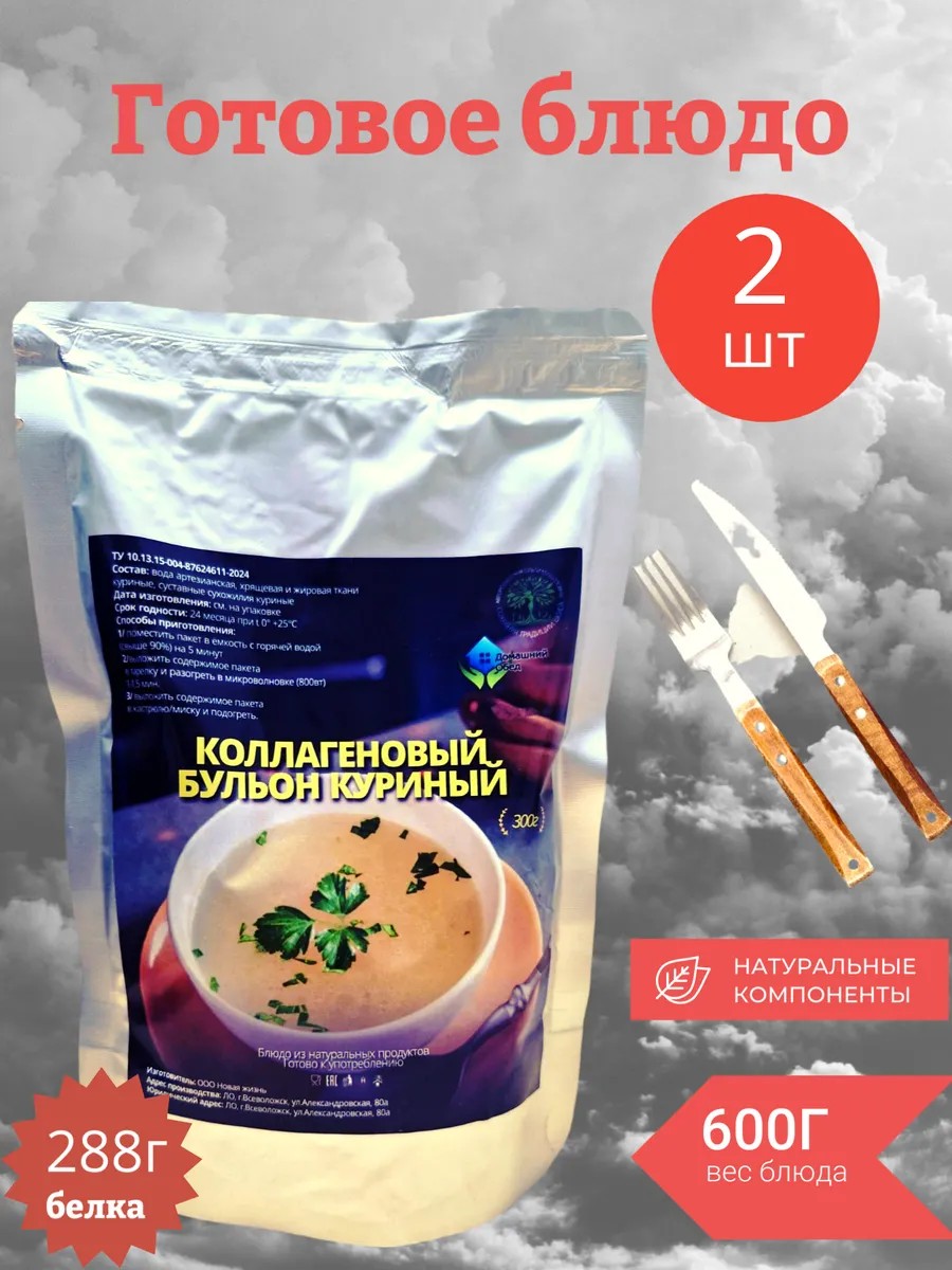 | Комплектация | Готовое блюдо; Куриный бульон; коллаген |