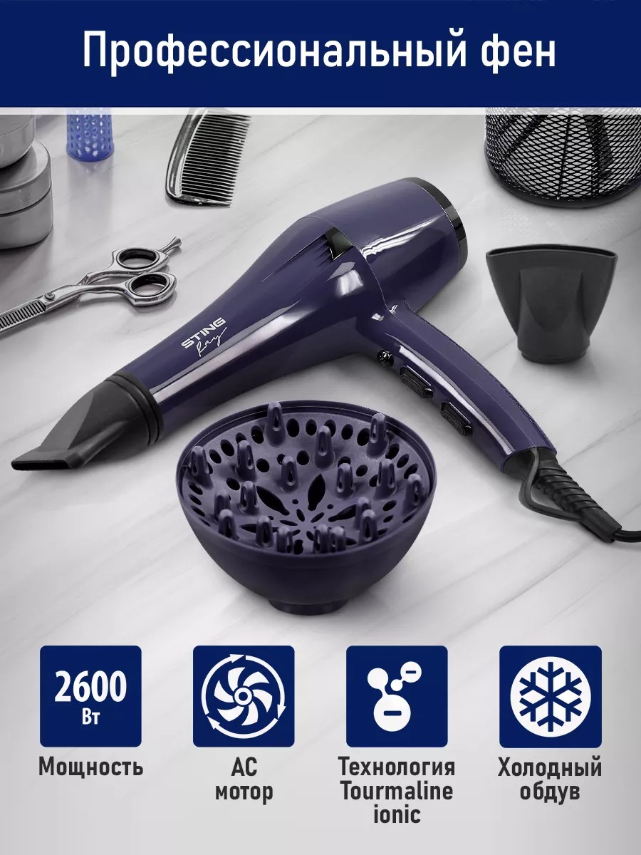 STINGRAY Фен для волос профессиональный с диффузором 2600Вт