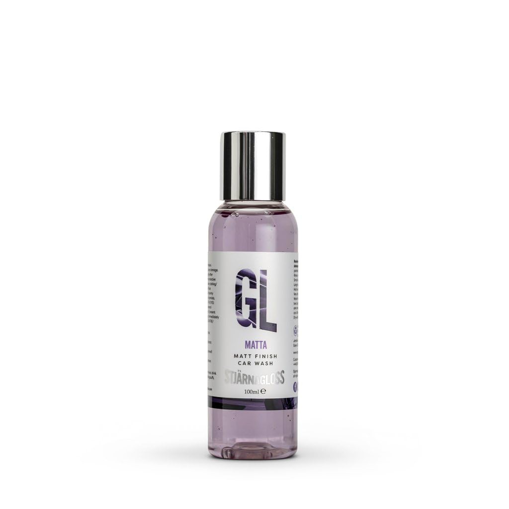 Specially designed for matte and satin finishes, safe for all paint types. pH neutral formula for effective cleaning without residue. Does not contain silicone wax. Suitable for glossy surfaces. Does not contain gloss enhancers.Stjärnagloss Matta: Stjärnagloss Matta Shampoo is a specialist cleaner developed for matte and satin finishes, but can also be safely used on glossy vehicles. Matte and satin surfaces require special care to avoid unintended shine. This shampoo has a pH-neutral formula and cleans effectively after rinsing without leaving residue. Unlike regular car shampoos, it contains no curing agent.STJÄRNAGLOSS - MATTA - Matte Finish Shampoo - 100ml Speciaal ontworpen voor matte en satijnen afwerkingen, veilig voor alle laktypes. pH-neutrale formule voor effectieve reiniging zonder residu. Bevat geen siliconenwas. Geschikt voor glanzende oppervlakken. Bevat geen glansversterkers.Stjärnagloss Matta: Stjärnagloss Matta Shampoo is een gespecialiseerde reiniger ontwikkeld voor matte en gesatineerde afwerkingen, maar kan ook veilig worden gebruikt op glanzende voertuigen. Matte en gesatineerde oppervlakken vereisen speciale zorg om onbedoelde glans te voorkomen. Deze shampoo heeft een pH-neutrale formule en reinigt na het spoelen effectief zonder resten achter te laten. In tegenstelling tot gewone autoshampoos bevat het geen uitharding.