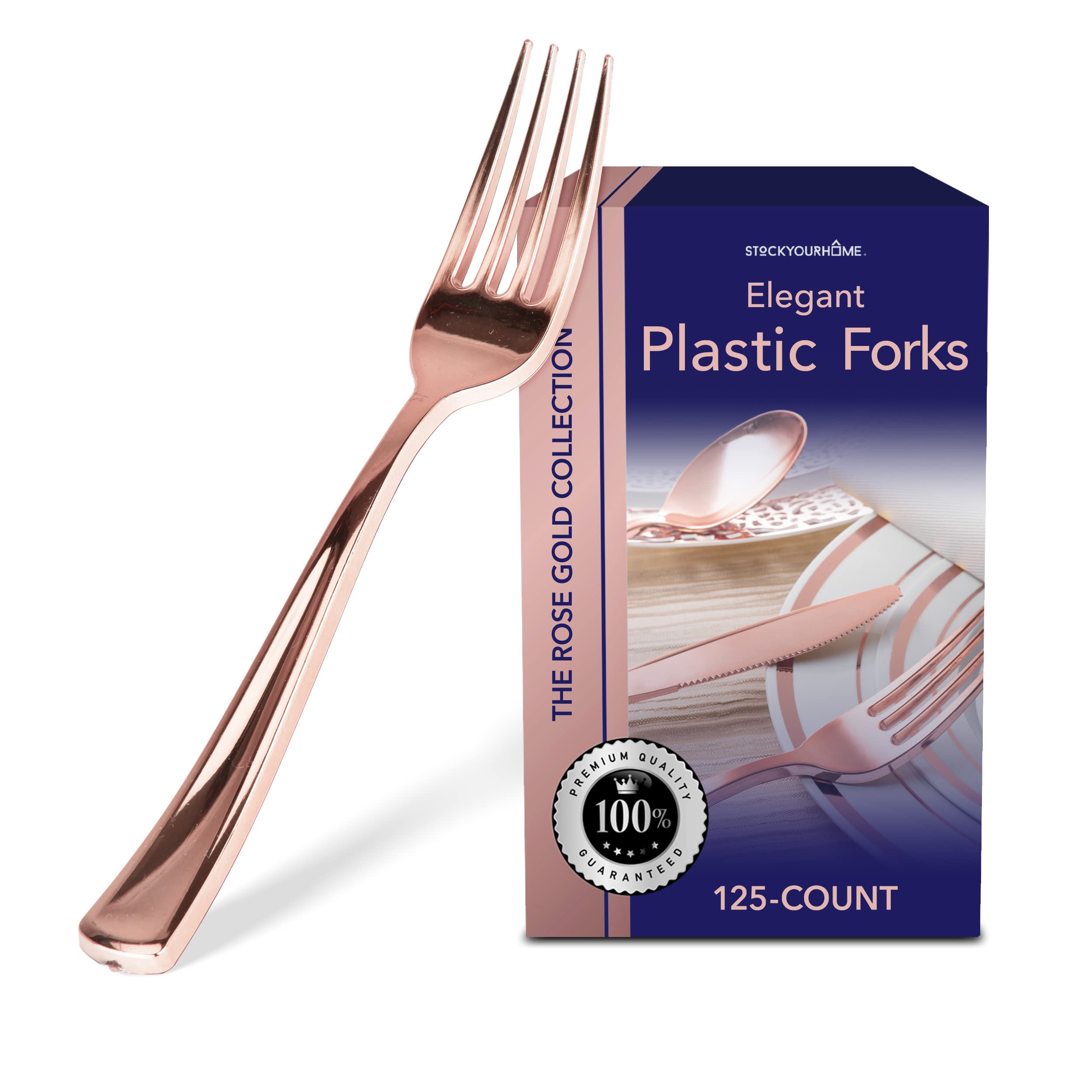 Stock Your Home 125 Disposable Heavy Duty Plastic Forks, Fancy Plastic Silverware Looks Like Real Cutlery - Utensils Perfect for Catering Events, Restaurants, Parties and Weddings (Rose Gold) Forks Rose Gold