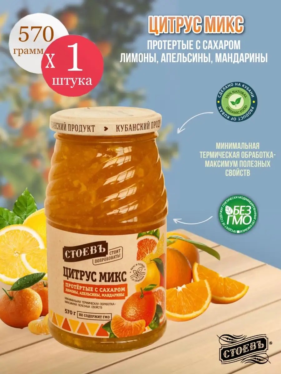 Насладитесь уникальным вкусом и пользой с протертым цитрусовым миксом от СтоевЪ – настоящей находкой для любителей натуральных продуктов питания. Насыщенный цитрусовый вкус и нежная текстура делают его идеальным выбором как для взрослых, так и для детей стремящихся к здоровому образу жизни, а также он является незаменимым лакомством на вашем столе.