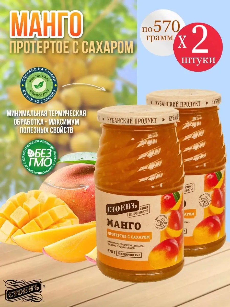 Протертое с сахаром манго от СтоевЪ – настоящая находка для любителей натуральных продуктов питания. Насыщенный тропический вкус и нежная текстура делают его идеальным выбором как для взрослых, так и для детей стремящихся к здоровому образу жизни, а также он является незаменимым лакомством на вашем столе.
