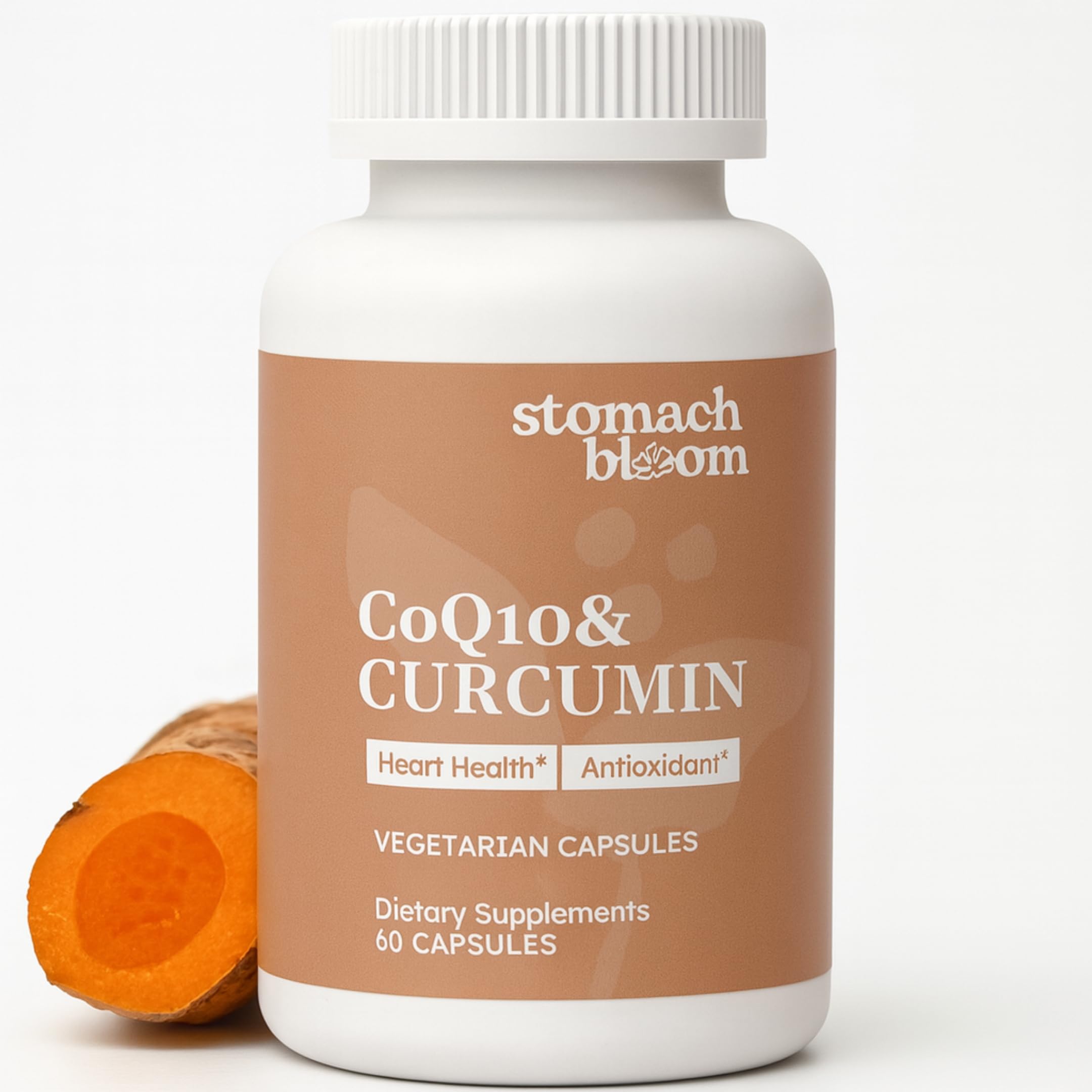 100 MADE IN USA - From research and formulation to manufacturing and packaging, every step in creating StomachBloom CoQ10 capsules happens on American soil. As a family-owned business, we've spent nearly 40 years committed to transparency and quality—because what's in your product matters. TWO-MONTH SUPPLY - Each bottle contains 60 easy-to-swallow capsules, providing a full 2-month supply at the recommended daily dose. POWERFUL ANTIOXIDANT - CoQ10 has antioxidant properties that may help protect cells from oxidative stress. . CoQ10 FOR WELLNESS - CoQ10 is a naturally occurring compound in the body that plays a role in cellular energy production. . INFUSED WITH CURCUMIN - We've added curcumin, a compound from turmeric known for its traditional uses in supporting overall wellness. 3X BETTER ABSORPTION - Our nano-technology ensures 3 times better absorption compared to regular CoQ10 supplements, delivering more of what your body needs.