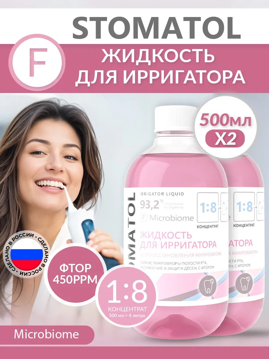 Жидкость для ирригатора, раствор для ирригатора, концентрат для ирригатора, ополаскиватель для полости рта STOMATOL СТОМАТОЛ Microbiome. ВЛОЖЕНИЕ 2 ШТ. Жидкость для ирригатора, раствор для ирригатора, концентрат для ирригатора, ополаскиватель для полости рта STOMATOL СТОМАТОЛ Microbiome. Эта жидкость для ирригатора обладает мощным антимикробным действием. Раствор идеально подходит для глубокого очищения полости рта. Концентрат 1 к 8 включает активные компоненты, которые эффективно борются с зубным камнем и кариесом. Ополаскиватель деликатно увлажняет слизистую, успокаивая и снимая раздражение.
