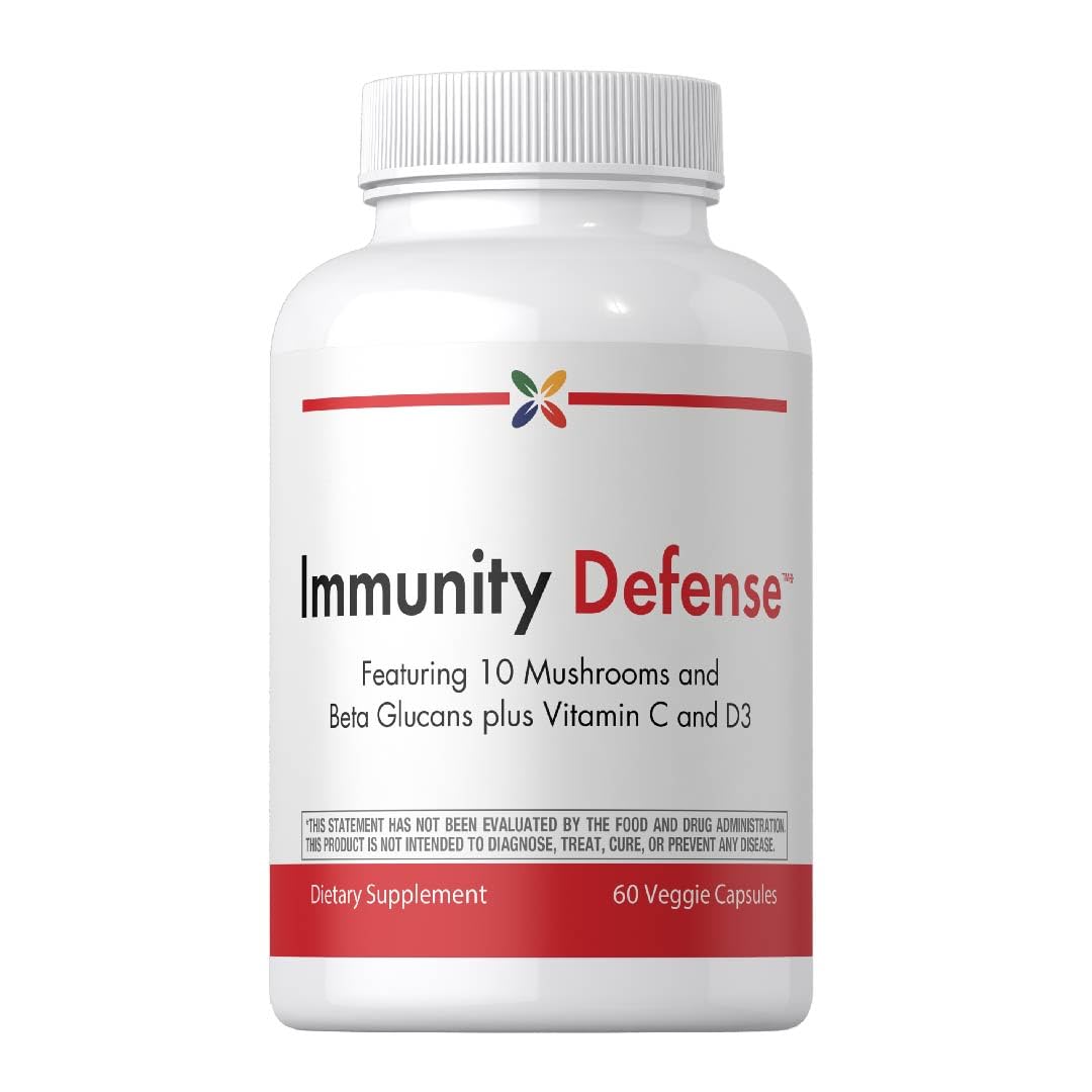 Immunity Defense features a potent blend of 500 mg of vitamin C, 25 mcg of vitamin D and 10 mushrooms including lion's mane, reishi, turkey tail.