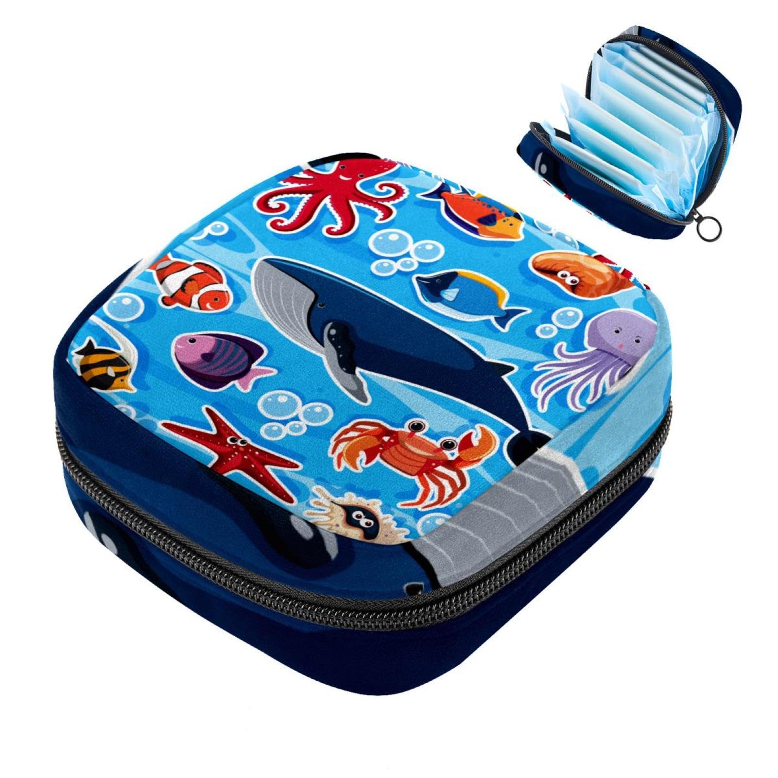 Storage bags for women's bandages marine animals navy work patterns portable menstruation cardboard panty lip inlays tampons women's bandages storage holder for women school office multicolored 06