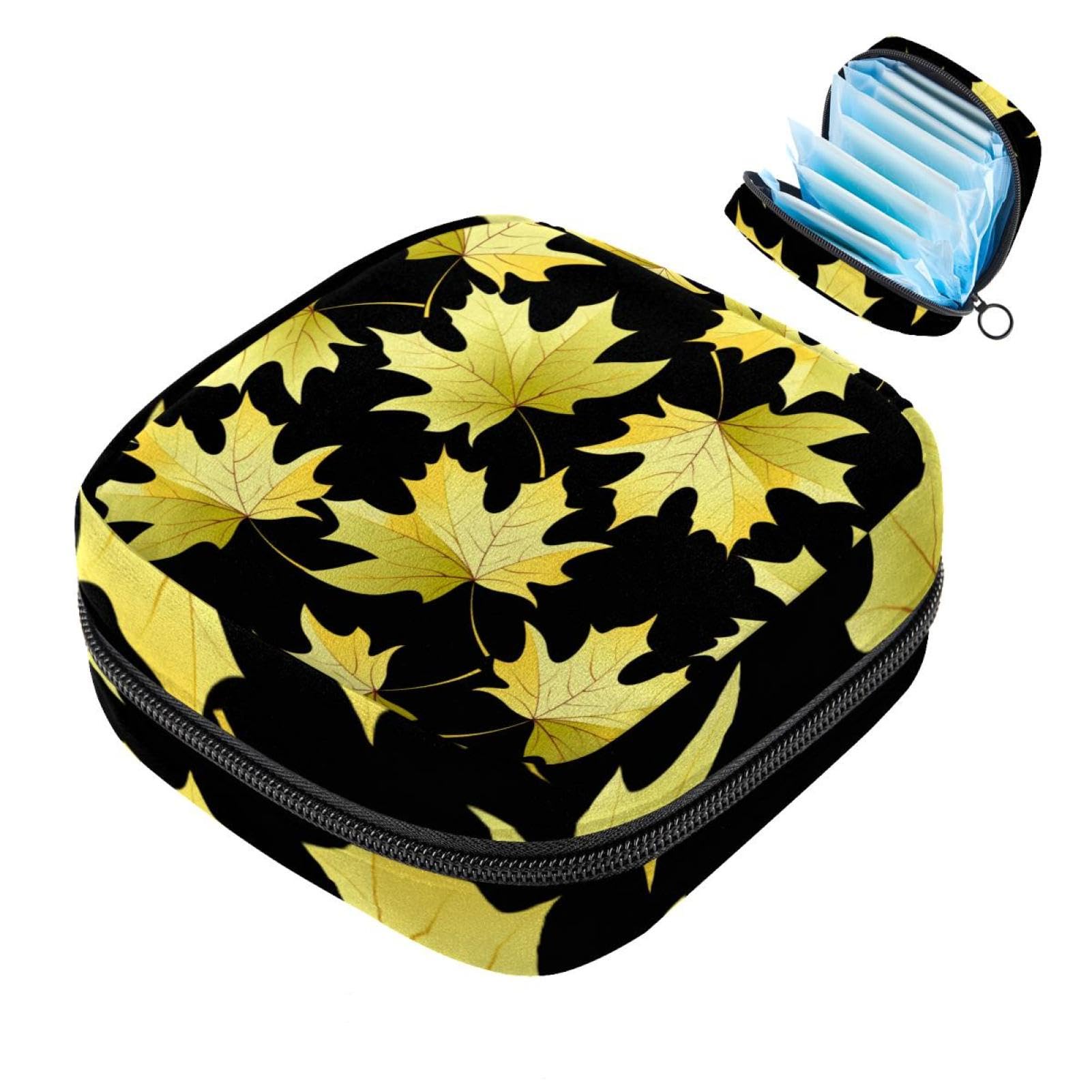 Storage bags for women's bandages yellow ahorn leaves black background portable menstrual insert panty liners tampons women's bandages storage holder for women school office multicolored 04