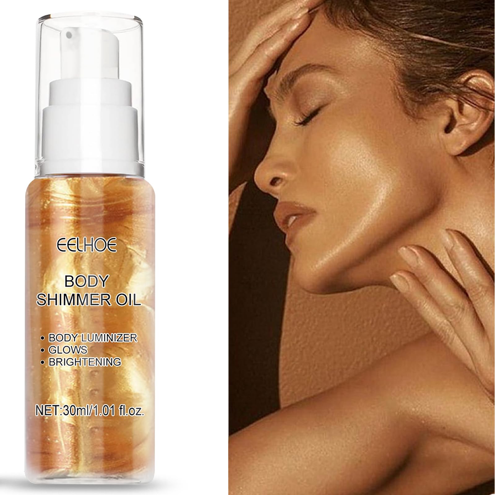 body luminizer INSTRUCTIONS FOR USE Apply a small amount SAFETY WARNING See moreLong-lasting formula: Our shimmering body oil is designed to hold you in place and give you lasting glow all day and night. Enjoy a radiant look that lasts without worrying about fading or smudging. Liquid Consistency: The shimmering body oil is easy to remove and apply to the skin, which increases glow and radiance. It is also suitable for all body parts and attracts your attention. VERSATILE AND ADJUSTABLE: Whether you want a subtle glow or an amazing shine, our sparkling body oil makes it possible to achieve the perfect luminosity. Apply a small amount for a natural glow or layer it for a more intense reflection that catches every light. Conditions and Moisturizes: Formulated with nourishing oils, our shimmering body oil deeply hydrates the skin, leaving it soft and supple. Say goodbye to dry, dull skin and hello to a smooth, radiant complexion. Create diamond skin: Our shimmering body oil is infused with light-reflecting particles that instantly give your skin a beautiful and radiant glow. Emphasize your natural beauty and stand out from the crowd with a striking glitter.Body Shimmer Oil, highlighter make-up voor lichaam en gezicht, helderende vloeistof voor alle huidtypes (goud) body luminisator GEBRUIKSAANWIJZING Breng een kleine hoeveelheid aan VEILIGHEIDSWAARSCHUWING Meer bekijkenDuurzame formule: onze glinsterende lichaamsolie is ontworpen om u op positie te houden en u de hele dag en nacht lang aanhoudende glans te geven. Geniet van een stralende look die aanhoudt zonder je zorgen te hoeven maken over vervagen of vlekken. Vloeibare consistentie: de glinsterende lichaamsolie is gemakkelijk te verwijderen en op de huid aan te brengen, wat de glans verhoogt en straalt. Het is ook geschikt voor alle lichaamsdelen en trekt je aandacht. VEELZIJDIG EN VERSTELBAAR: Of je nu een subtiele glans of een verbazingwekkende glans wilt, onze fonkelende lichaamsolie maakt het mogelijk om de perfecte helderheid te bereiken. Breng een kleine hoeveelheid aan voor een natuurlijke gloed of laag deze voor een intensere reflectie die elk licht vangt. Verzorgt en bevochtigd: samengesteld met voedende oliën, hydrateert onze glinsterende lichaamsolie de huid diep en verzorgt deze zacht en soepel. Zeg vaarwel tegen een droge, doffe huid en verwelkom een gladde, stralende teint. Maak een diamant huid: onze glinsterende lichaamsolie is doordrenkt met lichtreflecterende deeltjes die je huid onmiddellijk een prachtige en stralende glans geven. Benadruk je natuurlijke schoonheid en onderscheid je van de massa met een opvallende glitter.