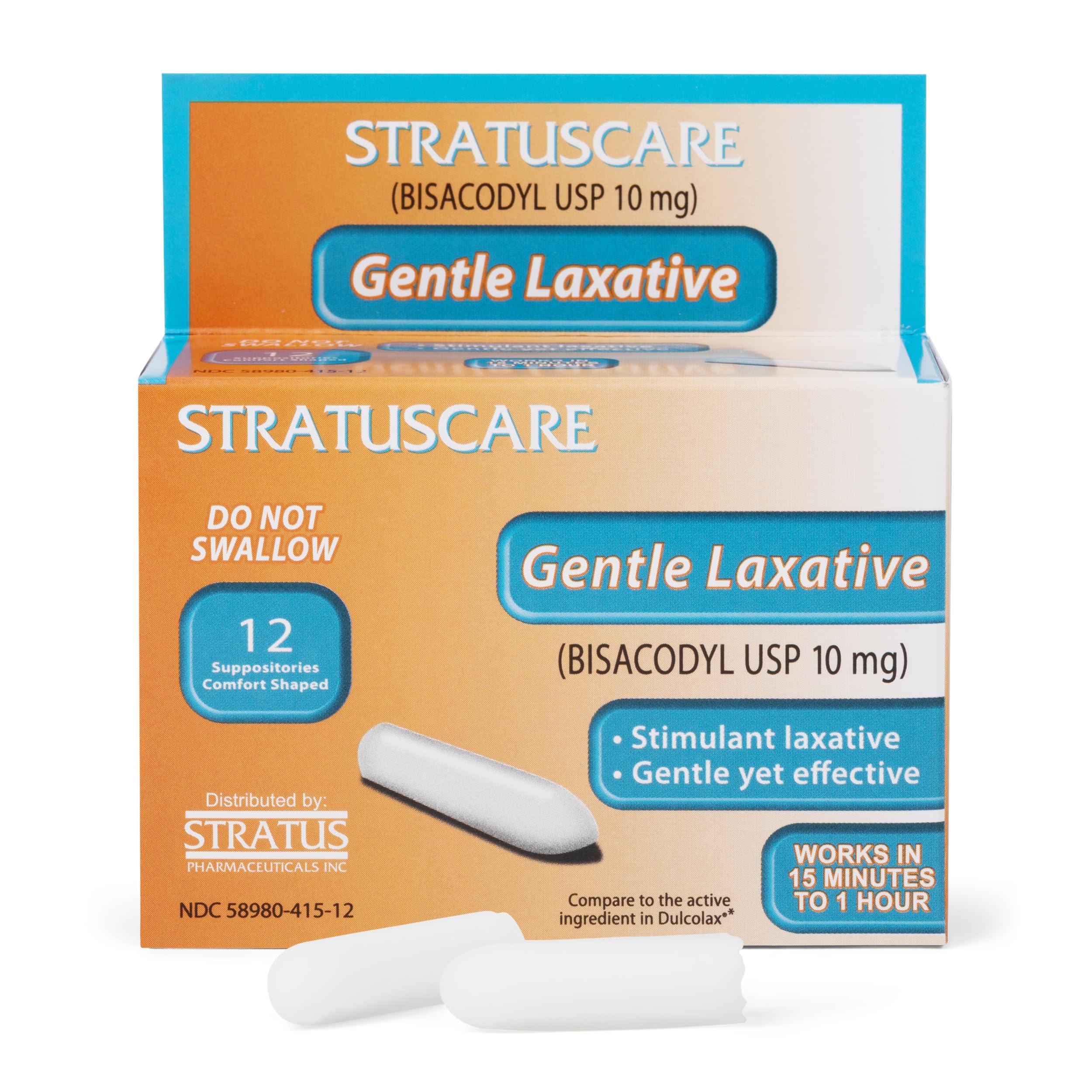 STRATUS PHARMACEUTICALS Bisacodyl Laxative Suppositories 10mg for Constipation Relief for Adults, Fast Acting Suppository, 12 Count