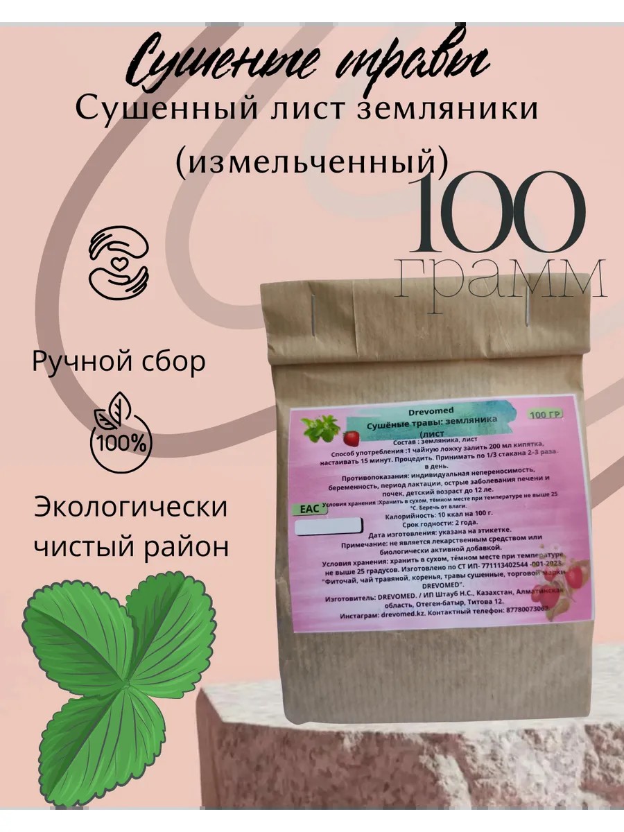 Земляника лист резаный 100 г | Drevomed