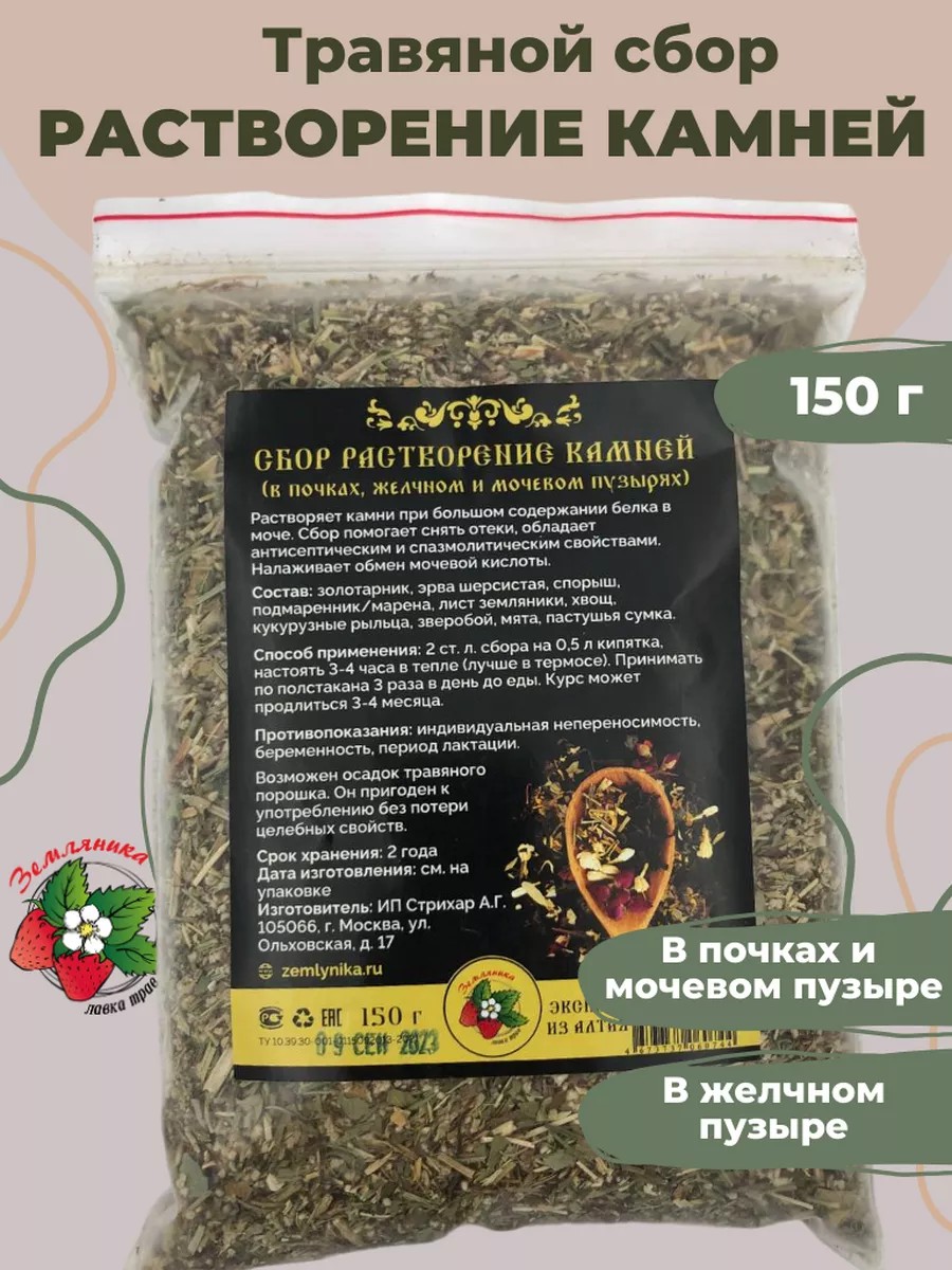 The "Stone Dissolution" choleretic tea is an effective choleretic remedy, specially formulated to support the health of the kidneys, gallbladder, and bladder. This unique kidney stone tea contains medicinal herbs that help dissolve and remove kidney, gallbladder, and bladder stones. One of the key features of this choleretic tea is its ability to dissolve stones with high protein content in the urine. Thanks to its composition, the tea helps reduce swelling and has antiseptic and antispasmodic properties. It also improves uric acid metabolism, which is especially important for urolithiasis, gallstones, and kidney stones. This choleretic tea is rich in various herbs, each with its own beneficial properties. It contains goldenrod (for the gallbladder), woolly erva (herb), knotweed (herb), bedstraw (madder), strawberry leaf, horsetail (herb for kidney stones), corn silk (herb for the kidneys), dried St. John's wort (herb), dried mint, and shepherd's purse (herb). Each of these herbs has a proven positive effect on kidney health and helps dissolve stones. Preparing this choleretic infusion is quite simple. To do this, pour 0.5 liters of boiling water over 2 tablespoons of the infusion and let it steep for 3-4 hours in a warm place. This will dissolve gallstones. It is best to use a thermos for infusion. After steeping, it is recommended to take half a glass 3 times a day before meals. The course of treatment can last for 3-4 months. It is important to consider the contraindications when using this choleretic infusion. It is not recommended for use by those with an individual intolerance to the components of the herbs, as well as during pregnancy and lactation. Choleretic tea "Stone Dissolution" is a natural and effective remedy for maintaining kidney health and dissolving stones. Try it and experience the beneficial effects on your health, so you can have kidneys free of stones and sand.