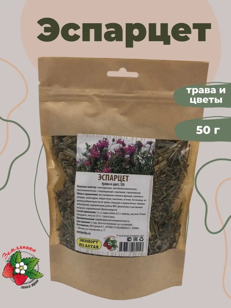 Эспарцет трава и цветы 50г, полезные свойства: тонизирующее, противовоспалительное, гипогликемическое, стимулирующее, седативное, гормональное. Область применения: восстановление половых функций у мужчин и женщин, ипохондрия, неврастения, гипотония, астения, бессонница, во время реабилитации после травм, операций и перенесённых тяжелых заболеваний, нормализация работы ЖКТ, физические и умственные