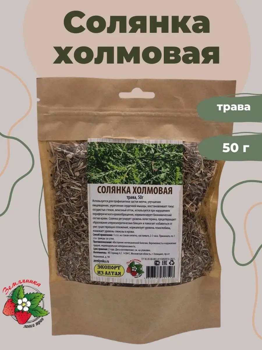 Солянка Холмовая трава используется для профилактики застоя желчи, улучшения пищеварения, укрепления сердечной мышцы, восстанавливает тонус сосудистых стенок, венозный отток, используется при нарушениях периферического кровообращения, нормализирует биохимический состав крови. Солянка регулирует уровень холестерина, предотвращает образование атеросклеротических бляшек и помогает избавиться от уже существующих отложений, нормализует уровень гемоглобина, понижает уровень глюкозы в крови. Способ применения: 1 ст.л. на стакан кипятка, настаивать 2-3 часа. Принимать по 1 ст.л. трижды за сутки. Противопоказания: обострение мочекаменной болезни, беременность и кормление грудью, индивидуальная непереносимость.