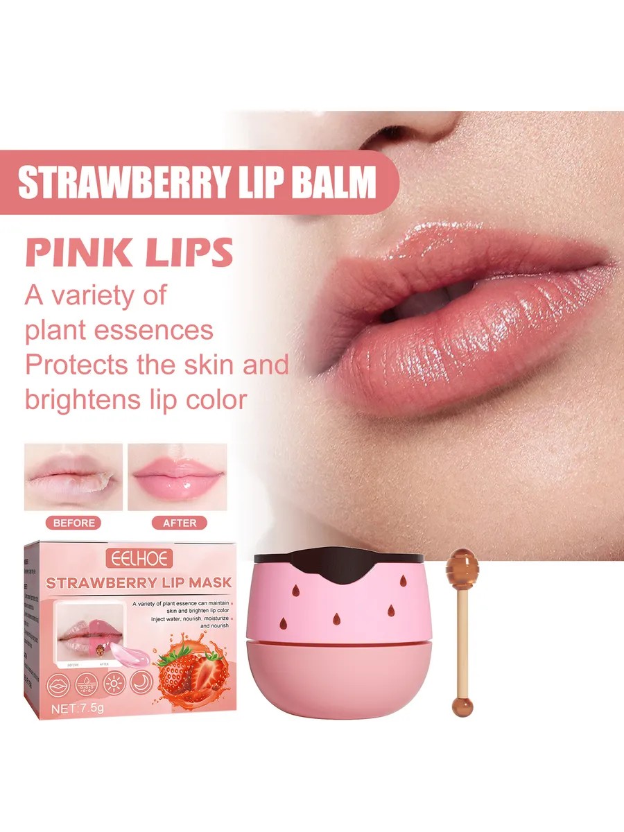 This nourishing lip mask with strawberry extract, honey, and collagen provides comprehensive lip care, effectively moisturizing, restoring, and protecting against dryness. The rich formula helps smooth fine lines, brighten the natural lip color, and prevent chapping, leaving lips looking healthy and well-groomed. Easy to use: cleanse your lips before bed, apply the mask with a convenient brush, distribute evenly, and gently massage for better absorption. Regular use helps strengthen the skin fibers, keep lips soft and fresh, and prevent chapping and dullness.