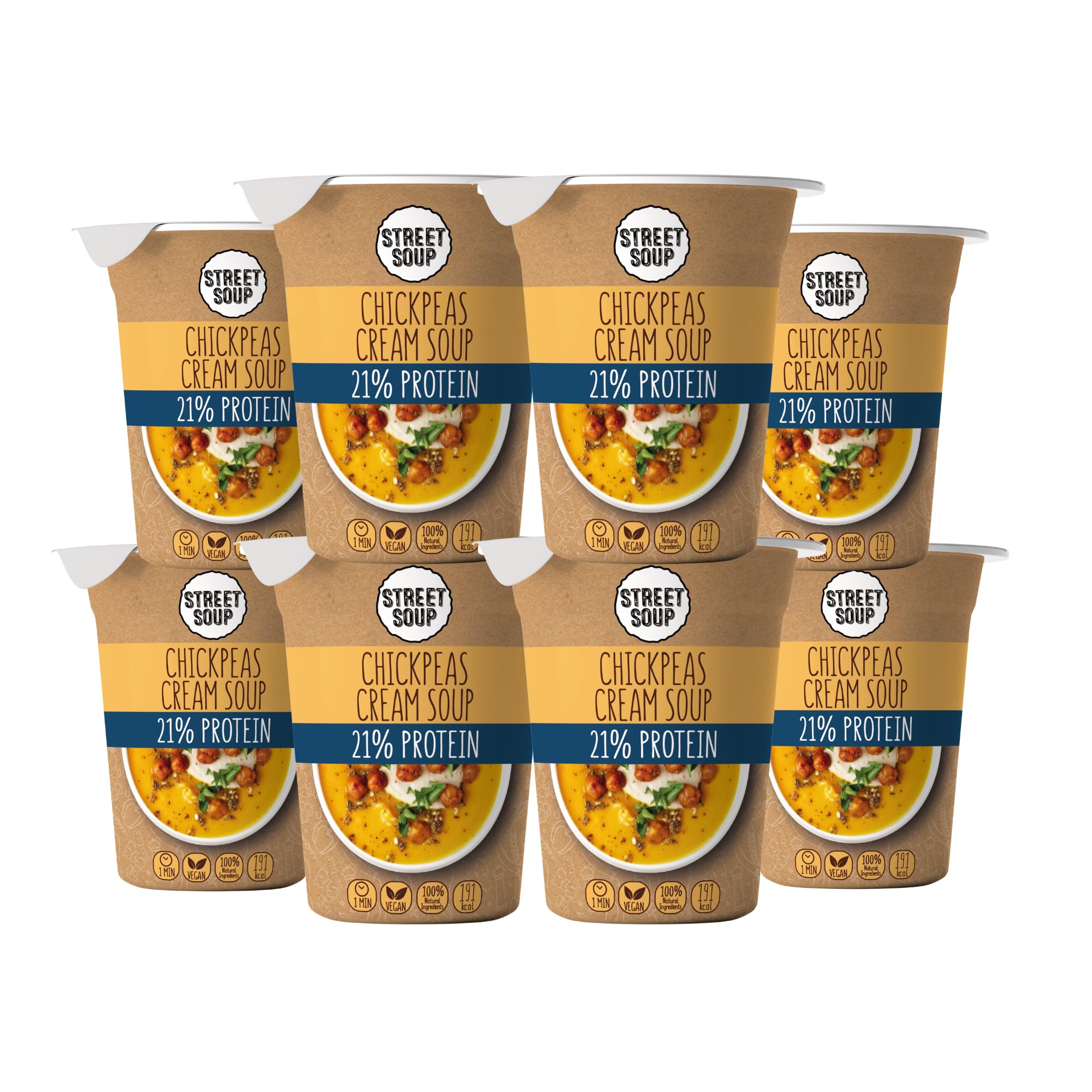 STREET SOUP Protein Instant Suppe To Go (Kichererbsensuppe, 8 Stück, je 300g) - Fertige Low Carb Cremesuppen Diät, zum Abnehmen unterwegs - Fertiggerichte Fertigessen vegan glutenfrei