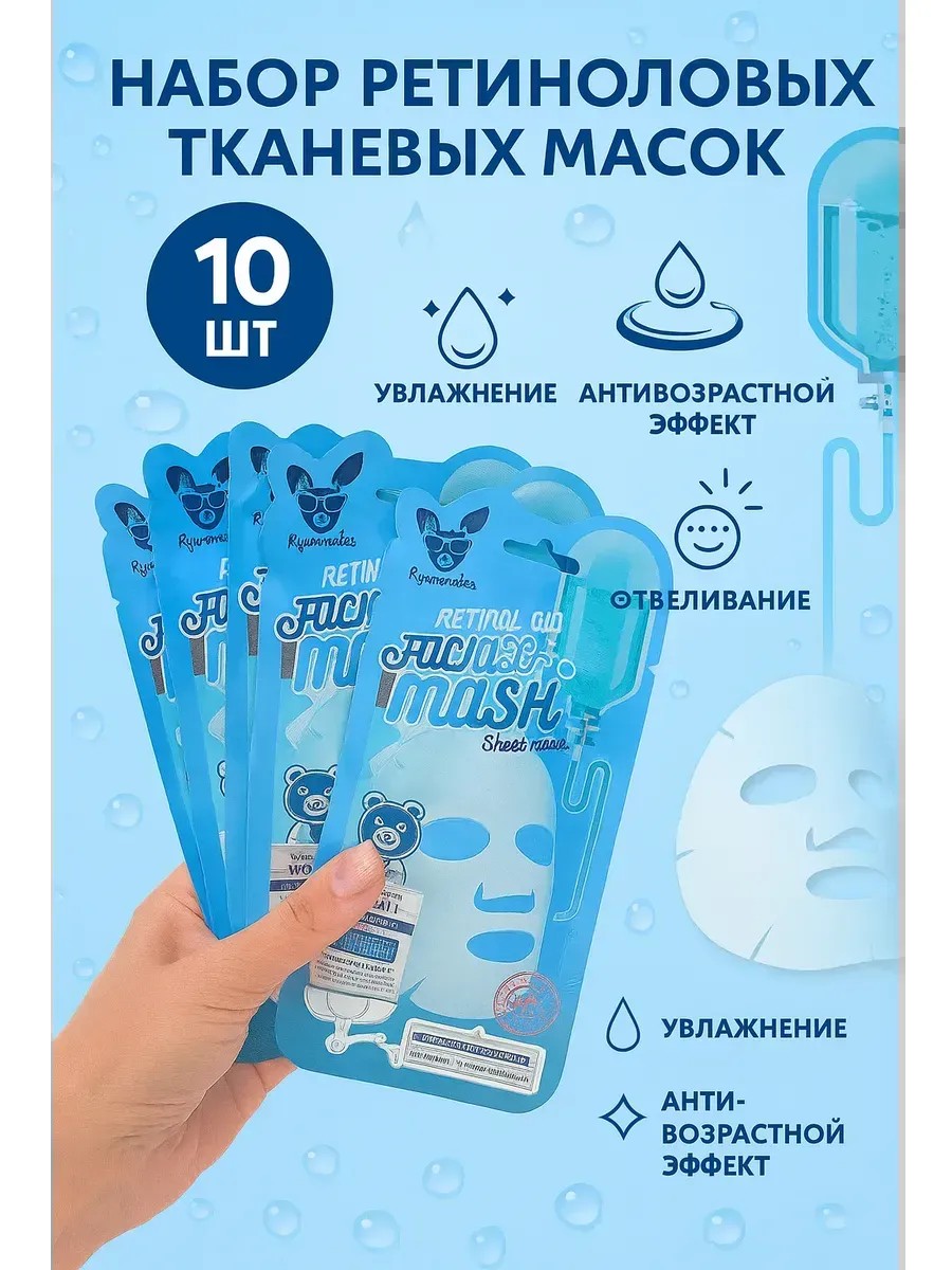 ретиноловые маски для лица, антивозрастные тканевые маски, маска с ретинолом, маски для лица 10 шт, уход за зрелой кожей, маски для подтяжки и увлажнения, тканевые маски от морщин, маски с эффектом омоложения, ночная маска с ретинолом, увлажняющие маски для лица.