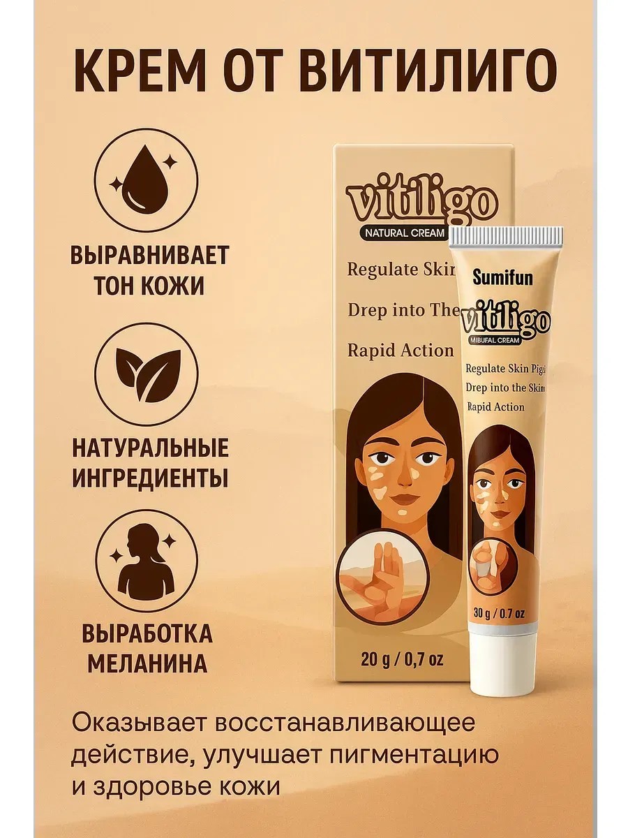 Ищут также по запросам: крем для выравнивания тона кожи, средство от витилиго, крем для восстановления пигментации кожи, крем с натуральными ингредиентами от витилиго, уход за кожей при витилиго, крем для лица и тела от пигментных нарушений, средство для выработки меланина, крем для кожи с белыми пятнами, крем для восстановления меланина, лечение витилиго в домашних условиях.