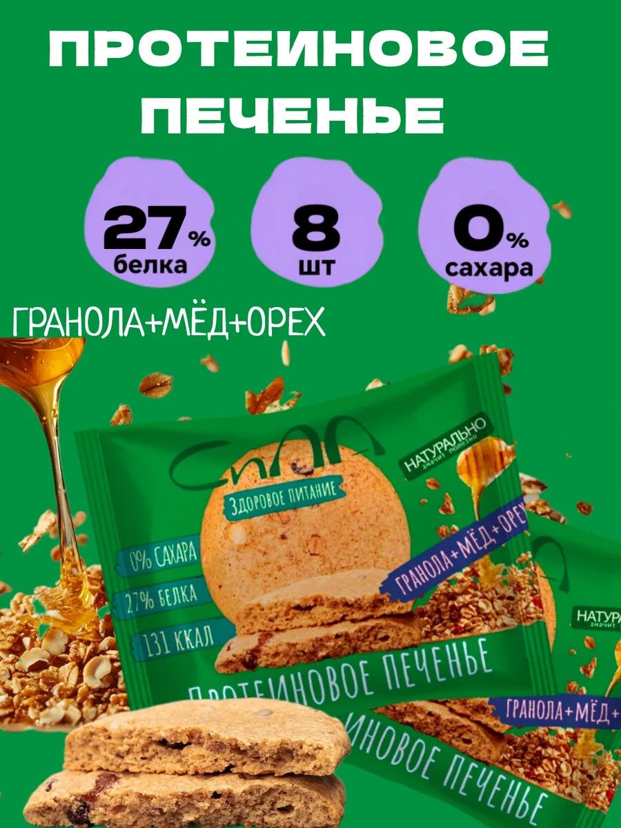 Протеиновое печенье Гранола с Мёдом и орехом 8 шт