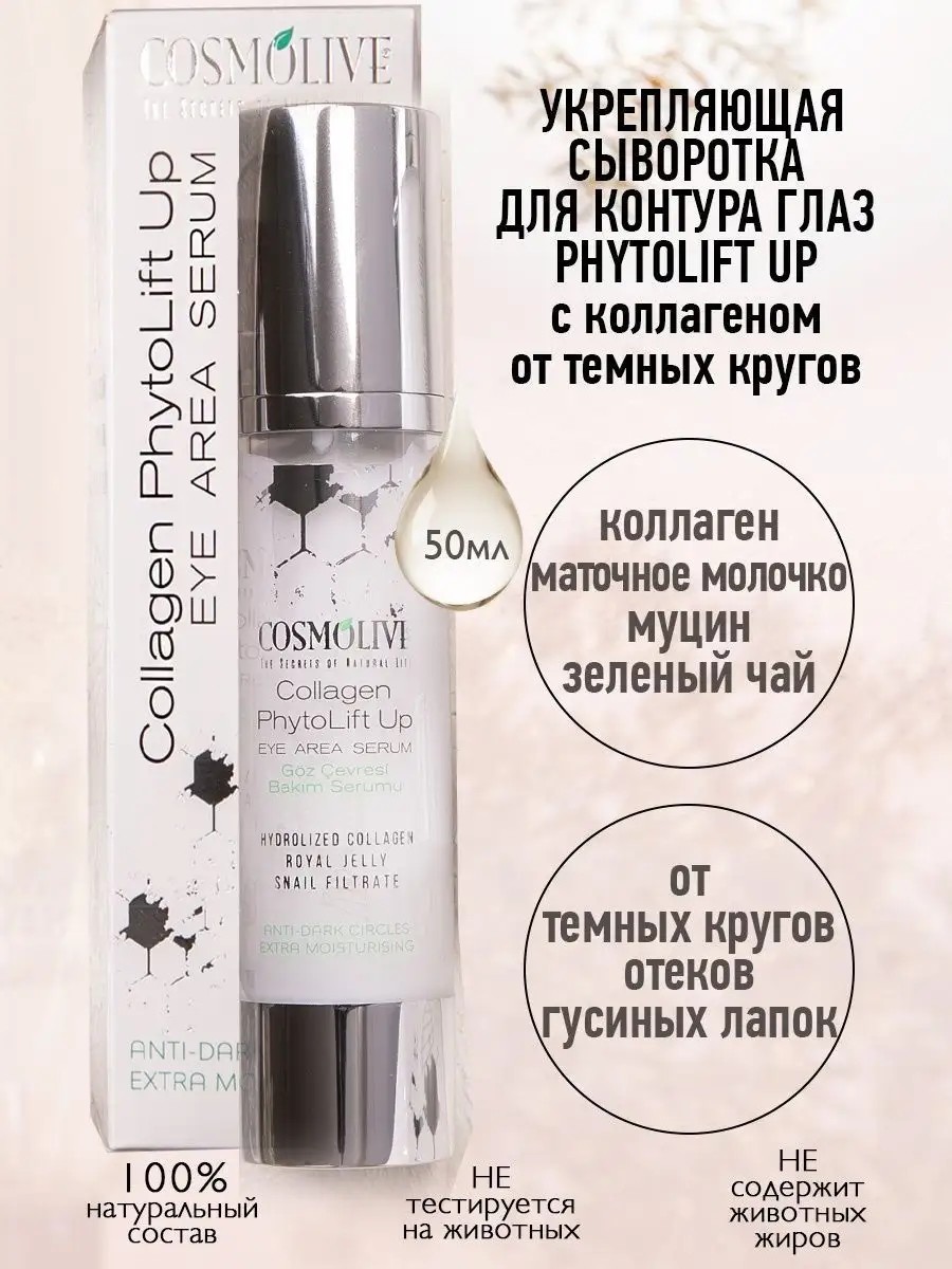 Сыворотка PHYTOLIFT UP специально разработана для ухода за тонкой кожей вокруг глаз. Она питает и увлажняет кожу благодаря коллагену, маточному молочку и экстракту улитки. Экстракт зеленого чая укрепляет стенки сосудов, тем самым осветляя темные круги вокруг глаз. Маточкино молочко богато питательными веществами и минералам - кожа восстанавливается, увеличивается выработка коллагена. Благодаря омолаживающим свойствам муцина предотвращается образование глубоких морщин на коже. При постоянном применении тонкая кожау вокруг глаз становится более упругой, молодой и здоровой. Нанесите крем на очищенную, после этапа тонизирования, кожу лица, распределите средство по лицу легкими похлапывающими движениями.