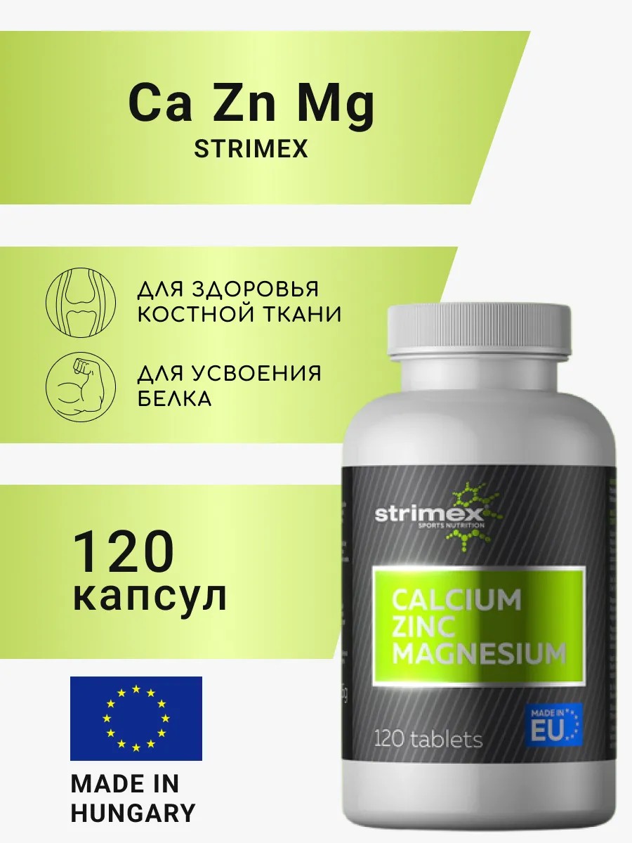 Calcium Zinc Magnesium от Strimex - это комплексный препарат, разработанный для поддержания здоровья костей, иммунитета и общего благополучия организма. Кальций является необходимым элементом для формирования костной ткани, а также участвует в работе сердечно-сосудистой и нервной систем. Цинк способствует укреплению иммунитета, защищает клетки от окислительного стресса и способствует здоровому росту и развитию. Магний играет важную роль в метаболических процессах, поддерживает нормальное функционирование мышц и нервной системы. Принимайте Calcium Zinc Magnesium от Strimex, чтобы укрепить свое здоровье и поддержать оптимальное функционирование организма.