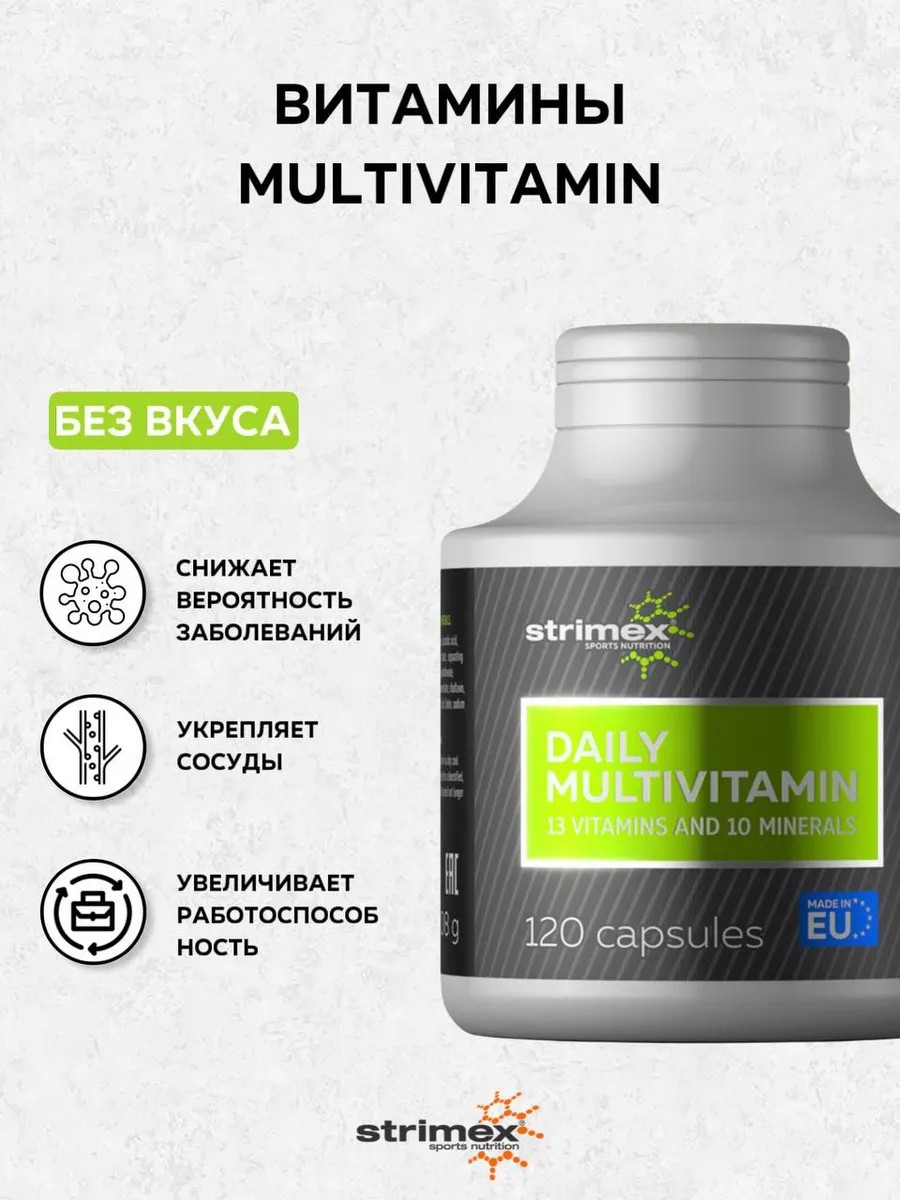 Витамины Daily Multivitamin от Strimex представляют собой комплексный подход к поддержанию здоровья и энергии в повседневной жизни. Содержащиеся в капсулах витамины и минералы обеспечивают организм необходимыми питательными веществами для поддержания высокой выносливости, восстановления после физических нагрузок и поддержания общего благополучия. Без добавления вкуса, этот продукт идеален для тех, кто ценит чистоту и эффективность. Выбирая Daily Multivitamin от Strimex, вы делаете первый шаг к улучшению вашего здоровья и энергетики, не забывая о красоте и благополучии.