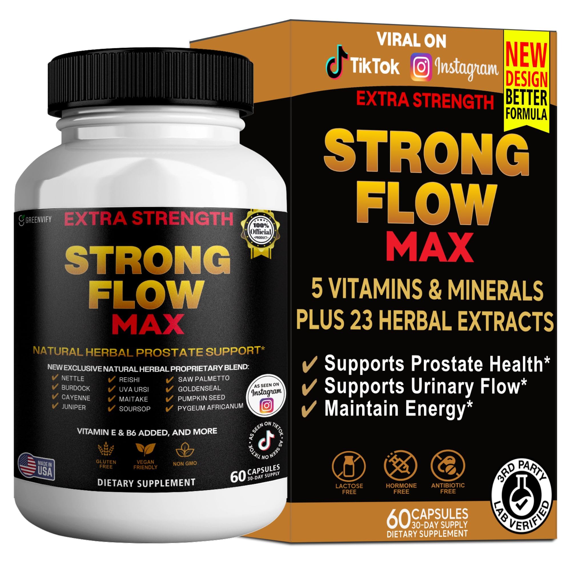 Strong Flow Max Extra Strength Prostate Support Natural Herbal Supplement with Saw Palmetto 60 Capsules 30-Day Supply (1)