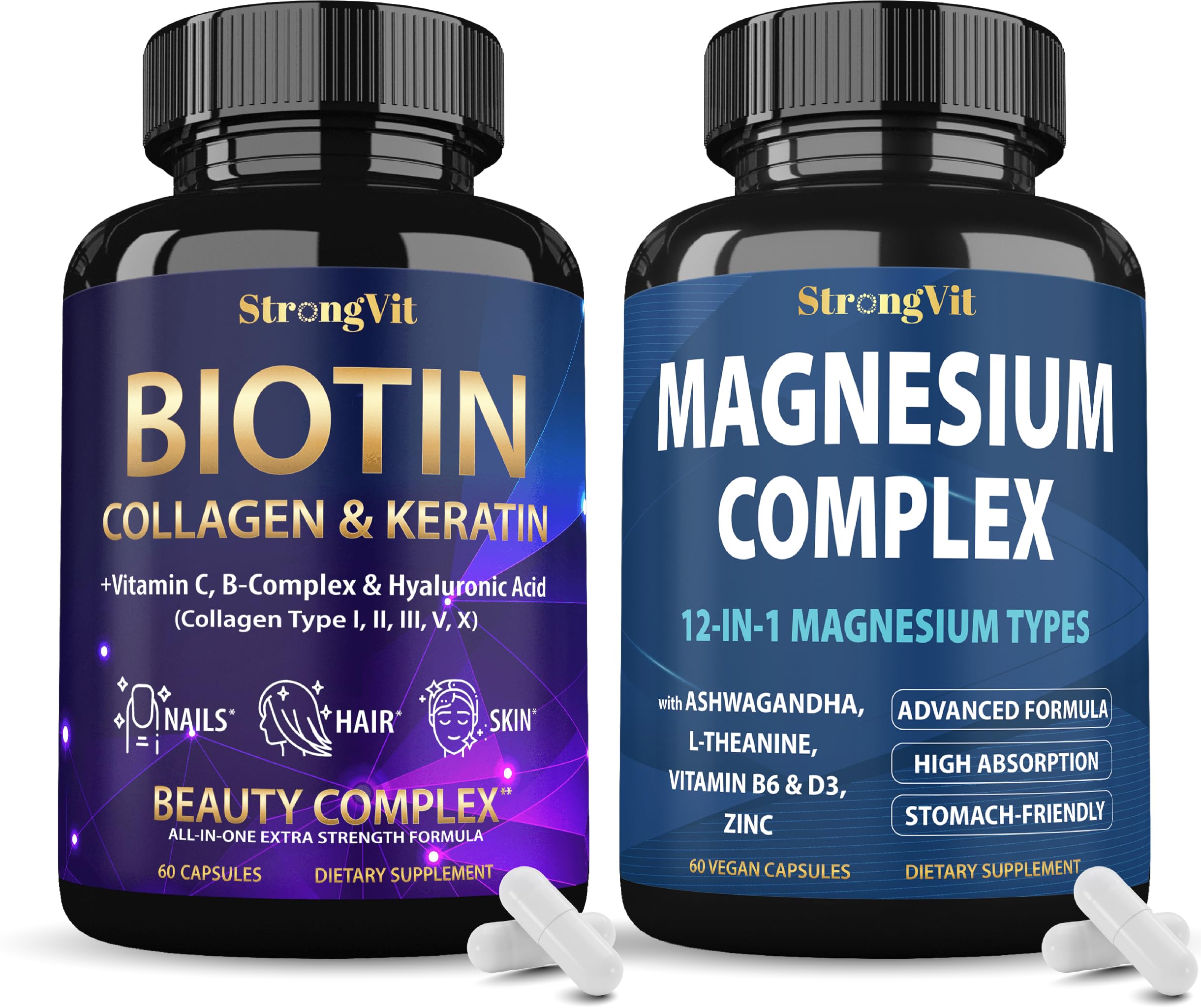 StrongVit Biotin Complex & Magnesium Supplements Bundle (120 Capsules)