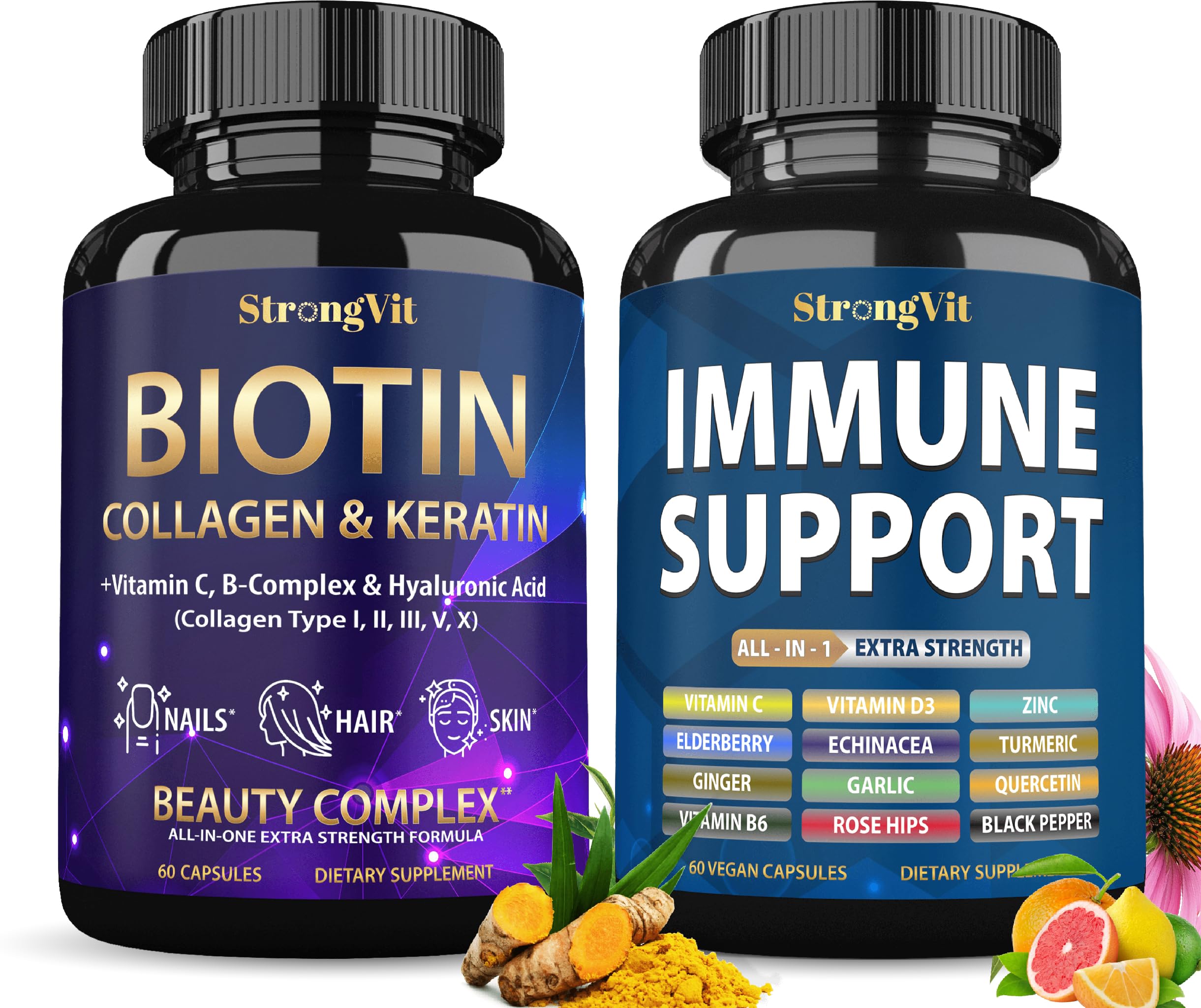 StrongVit Biotin Supplements & Immune Support Complex Bundle (120 Capsules)