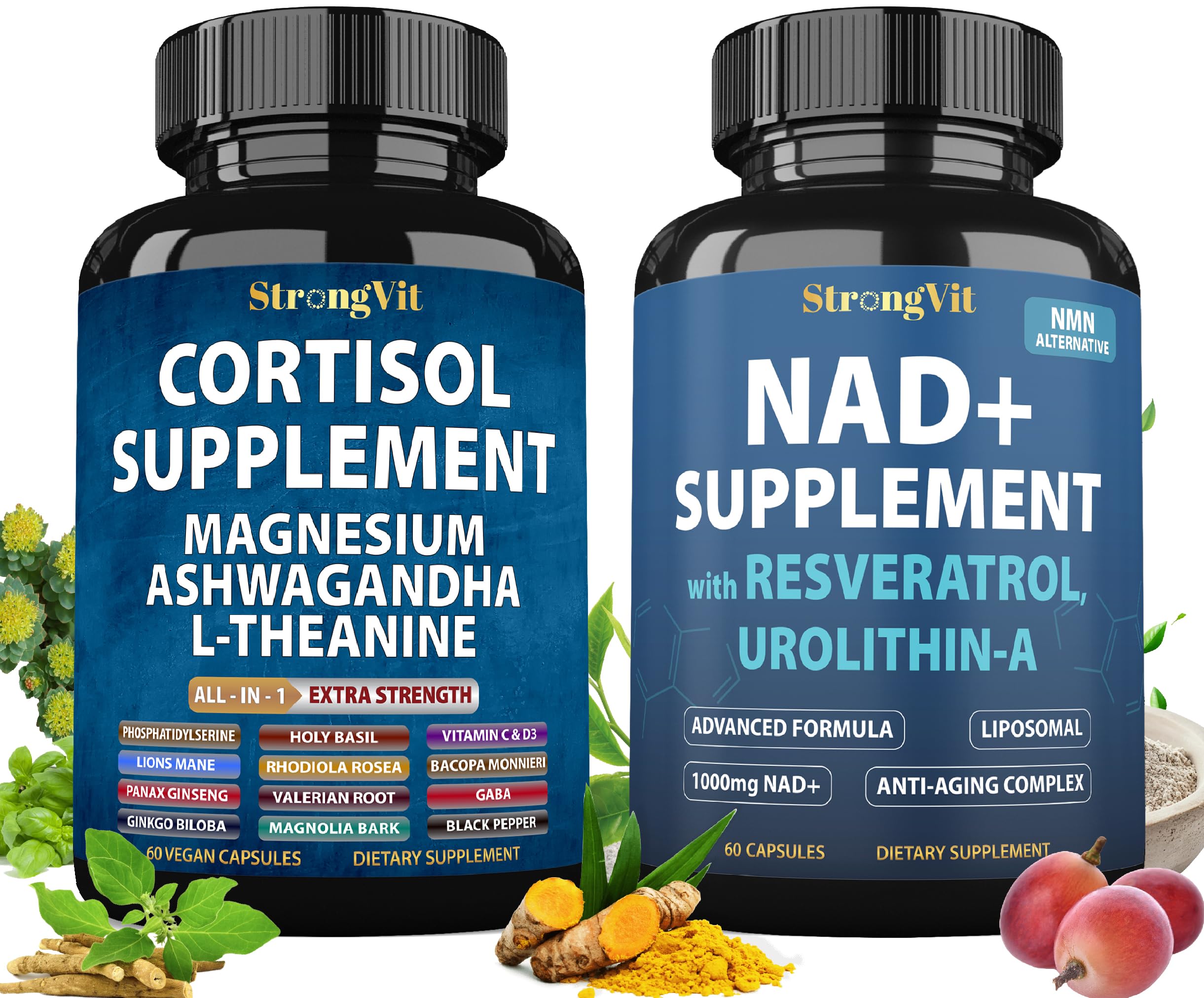 StrongVit Cortisol & NAD Supplement Bundle New Formula (120 Capsules)