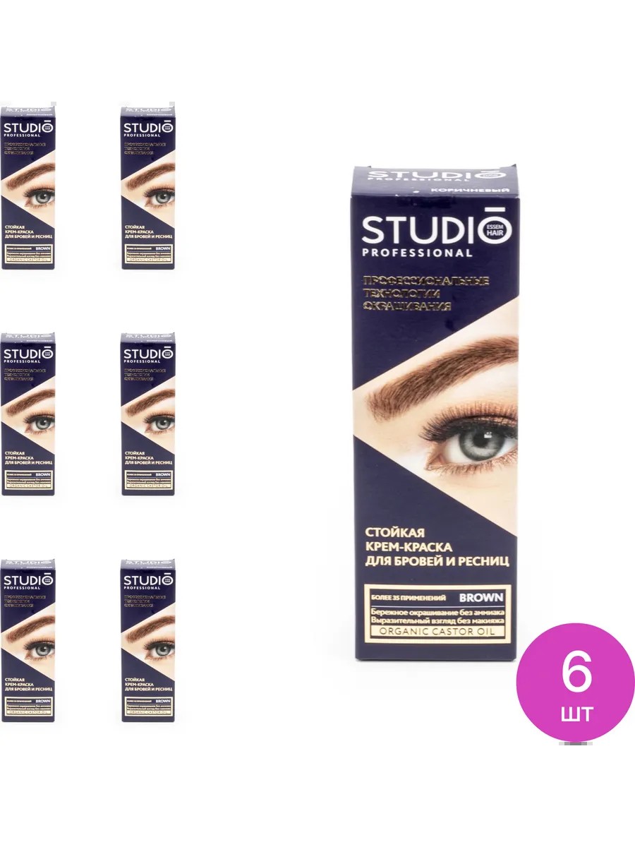 Studio Professional Essem Hair Краска для бровей и ресниц Студио, Коричневая, 50мл, 6 шт
