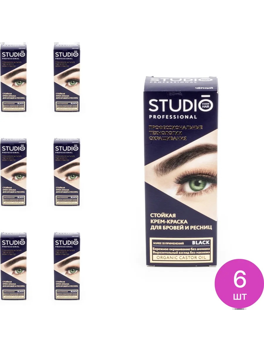 Studio Professional Essem Hair Краска для бровей и ресниц Студио Профессионал, Черная, 6 шт