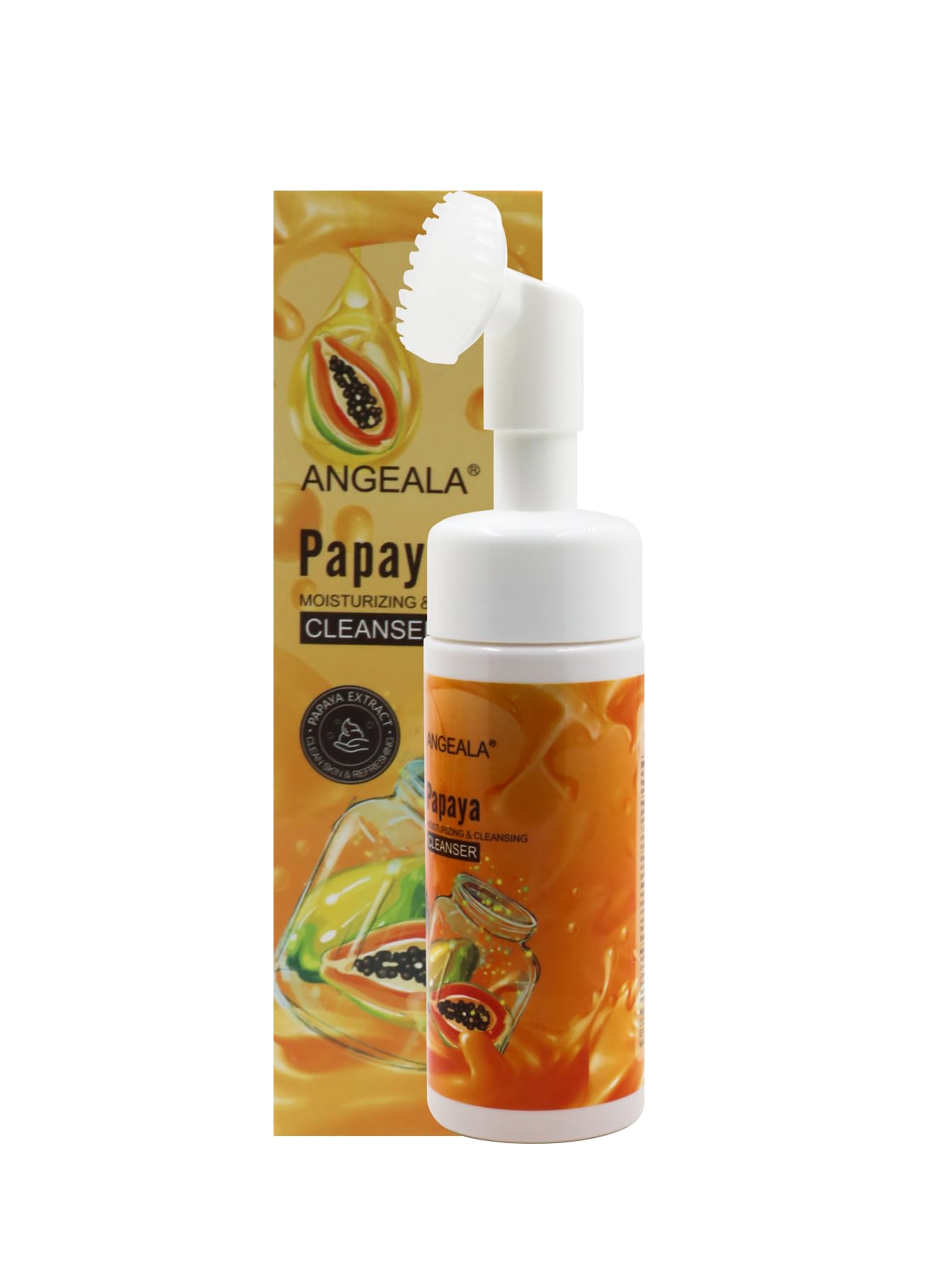 ANGEALA Papaya Moisturizing Cleansing Cleanser transforms your daily skincare routine into a refreshing tropical experience. This innovative foaming face wash combines the natural power of papaya extract with gentle cleansing agents to effectively remove makeup, control oil, and purify pores while maintaining your skin's natural moisture balance. The creamy formula produces a rich, luxurious foam that works to beautify and revitalize your complexion with every use. Infused with papaya fruit extract and camellia japonica flower extract, this cleanser delivers five powerful benefits in one bottle: it removes impurities, controls excess oil, moisturizes, and leaves skin feeling clean and refreshed. The convenient 150ml pump bottle with foaming dispenser makes application effortless—simply apply the proper amount to wet skin in the morning and evening, massage gently, and rinse with clean water. Perfect for those seeking a multi-tasking cleanser that delivers both deep cleansing and hydration, this papaya-infused formula helps you achieve clean, soft, and radiant-looking skin day after day.GENEROUS SIZE: Contains 5.07 fluid ounces (150ml) of facial cleanser in a convenient pump bottle for effortless dispensing and daily use. EASY APPLICATION: Apply proper amount to wet face in the morning and evening, add water and spread evenly, massage gently in circular motions, then rinse thoroughly with clean water. CREAMY FOAM TEXTURE: Transforms into a rich, creamy foam that thoroughly cleanses without stripping skin's natural moisture, leaving face feeling soft, smooth, and comfortably hydrated after each use. KEY INGREDIENTS: Enriched with papaya fruit extract, camellia japonica flower extract, and glycerin to gently cleanse while providing moisturizing and nourishing benefits for a healthy complexion. MULTI-BENEFIT FORMULA: Papaya moisturizing and cleansing face wash effectively removes makeup, controls oil, and minimizes pores while delivering five beautifying effects for clean, refreshed, and radiant skin.