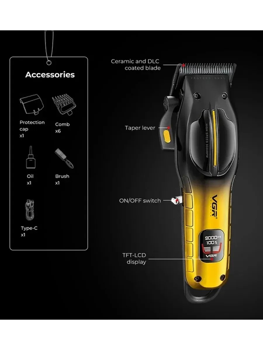 Откройте для себя высококачественный инструмент для ухода за волосами с этой стильной и надежной машинкой для стрижки. Оснащена мощным мотором и острыми лезвиями, обеспечивающими чистую и аккуратную стрижку различных типов волос. Эргономичный дизайн и легкий вес позволяют удобно управлять устройством даже при длительном использовании. В комплект входит регулируемый гребень для точной настройки длины стрижки, что делает устройство универсальным для создания разнообразных причесок. Идеально подходит как для профессиональных парикмахеров, так и для домашних мастеров, стремящихся к отличному результату. Надежная сборка и долговечные материалы гарантируют продолжительный срок службы и безопасность эксплуатации. Наслаждайтесь комфортом и качеством с этой современной машинкой для стрижки волос.