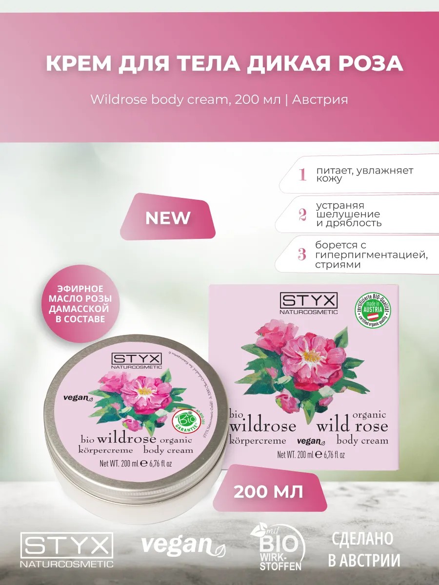 Крем-духи для тела Дикая роза, 200 мл, STYX