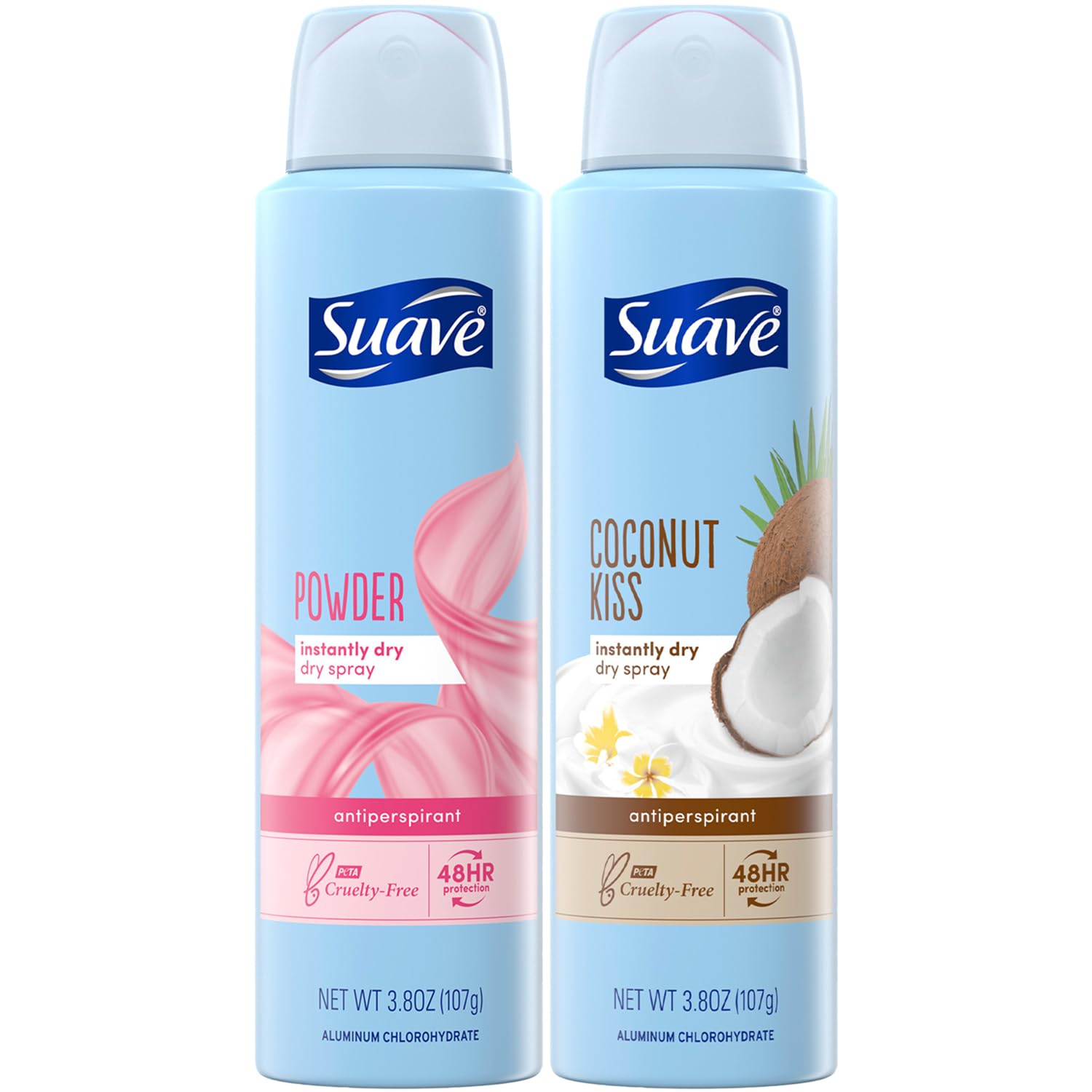 • SUAVE DEODORANT SET: Stay ahead of sweat and odor with the Suave Powder and Coconut Kiss Dry Spray bundle. They go on clear and dry instantly.