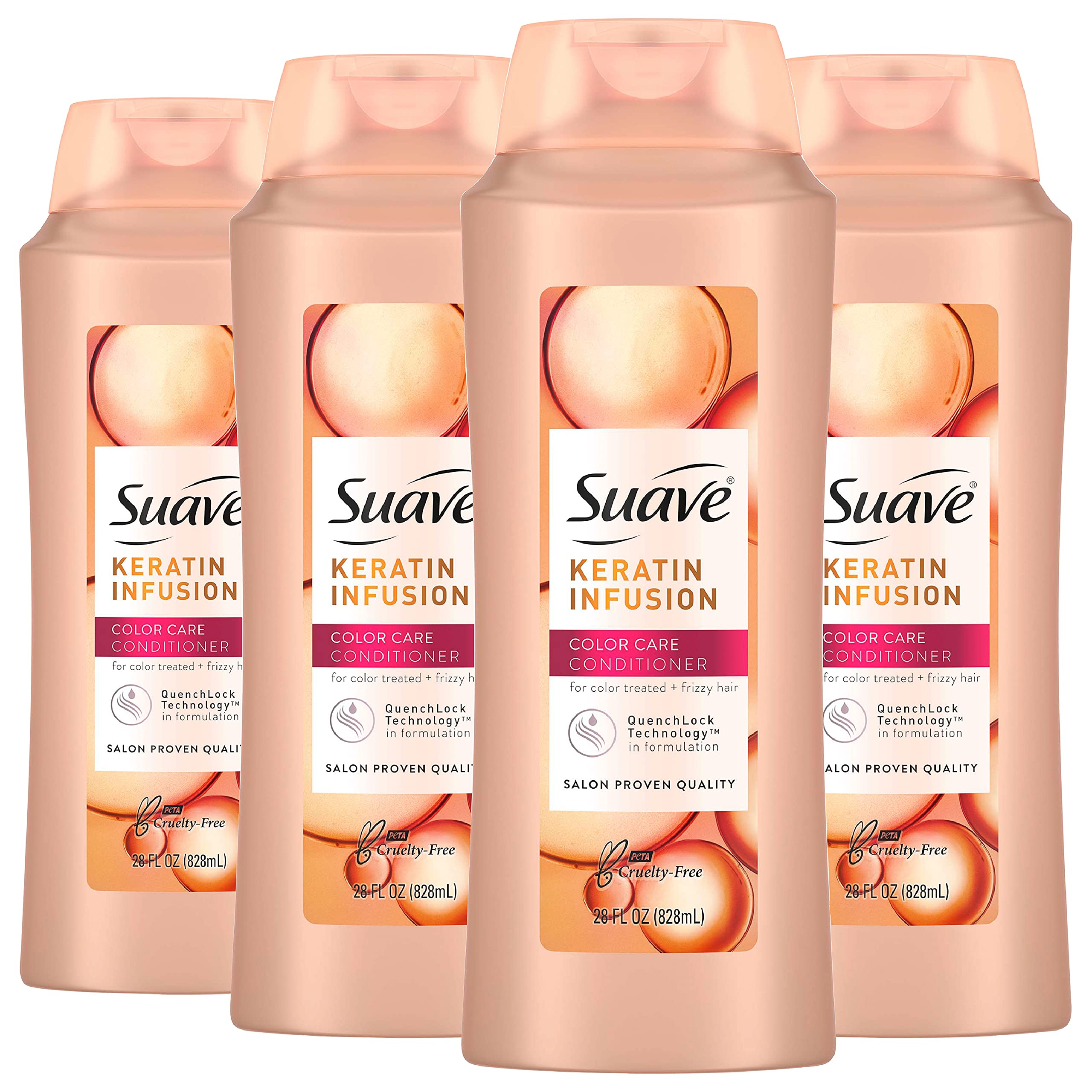 Keep your color vibrant with our Suave Professionals Keratin Infusion Color Care System. This salon proven color protecting system, infused with Keratin and UV Complex, helps seal the cuticle and keeps color vibrant for up to 40 washes. Leaving hair smooth and manageable, our Suave Professionals Keratin Infusion Color Care Conditioner is a smoothing color safe conditioner that detangles and controls frizz for up to 48 hours. This system also contains our unique QuenchLock. Technology that works by delivering lightweight micro-moisturizing particles that lock in hydration to help make hair strong to reduce breakage. The results, a system that leaves hair smooth and healthy-looking with 48 hour frizz control. Keratin Infusion Color Care Shampoo and Conditioner are salon proven to prevent frizz as well as Kérastase Oléo-Relax. (Kérastase is a registered trademark of L'Oréal SA). For best results, follow this shampoo and conditioner for color-treated hair system with Keratin Infusion Leave-In Conditioner for enhanced smoothness. Also use Suave Professionals styling products, which include hair sprays, serums, gels, and leave-in conditioners to help you achieve your desired look. Achieve Salon-Quality Results. Suave Professionals is salon-proven to work as well as salon brands, helping you achieve a variety of beautiful hairstyles all while caring for your hair. This line is developed to help you achieve naturally gorgeous, healthy-looking locks. About Suave. For over 75 years Suave has offered professional quality hair and skincare products for the entire family, The Suave mission is to make gold standard quality attainable to all, so everyone can look good, smell good, and feel good every day.Use our color safe shampoo and conditioner as a system for vibrant color for up to 40 washes. Pair this system with our Keratin Infusion Leave-In Conditioner, or Keratin Smoothing conditioner. Our color protecting conditioner is salon-proven to prevent frizz as well as Kérastase Oléo-Relax (Kérastase is a registered trademark of L'Oréal SA). Suave Keratin Infusion Color Safe hair care system provides 48-hour frizz control for manageable hair. Our color protecting conditioner can be used as a daily conditioner. This color safe conditioner and colored hair conditioner, infused with keratin, seals the hair cuticle from the outside for lasting smoothness. Suave Professionals Keratin Infusion Color Care Conditioner for color-treated hair is enriched with UV complex to help prevent color from fading.Best Sellers Rank: See Top 100 in Beauty & Personal Care. Recommended Uses For Product: Conditioner,Frizz Control,Frizz Management,Leave-in,Smoothness. Age Range (Description): Adult. Product Benefits: Color Care. Hair Type: All, Color Treated, Dry, Chemically Treated. Brand: Suave. : B00LBPO8PQ. Manufacturer: Unilever. Item model number: 10079400274189. Product Dimensions: 10.47 x 7.87 x 5.51 inches; 7 Pounds. Is Discontinued By Manufacturer: No.