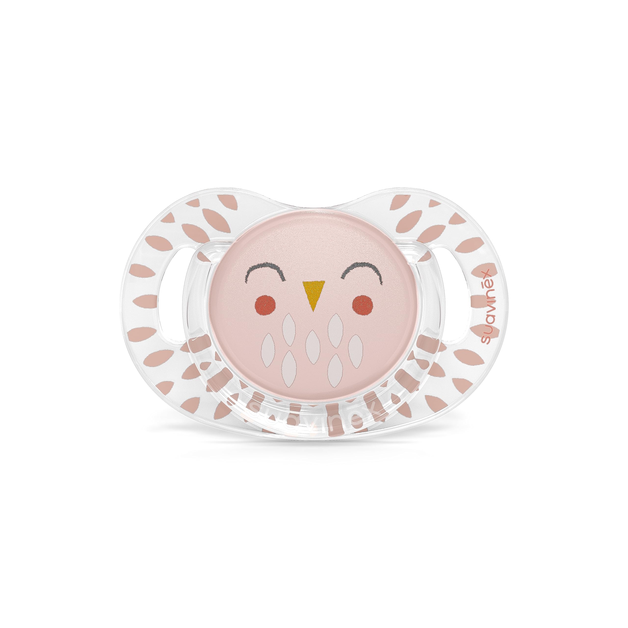 What a delightful pacifier from the Suavinex Bonhomia collection!This beautiful pacifier is suitable for children from 18+ months and has a very sweet design with an owl.With a Suavinex pacifier you go to quality and are guaranteed to be a good, safe pacifier for your child.This pacifier has an anatomical form.This pacifier is made of silicone and is free of BPA.The shape of the teats has several advantages.It ensures that your child easily accepts the pacifier and because the flat pacifier fits perfectly with your child's palate and helps the development of tongue and jaw muscles.The shield also has ventilation holes that prevent skin irritation around your child's mouth.Properties: * Suavinex Bonhomia 18m+ silicone pacifier * Design: Feather * Color: Pink * Age: 18+ months * Anatomical pacifier * Easily accepted and good for pine and tongue muscles * shields with ventilation holes prevents skin irritation * Material: silicone pacifier