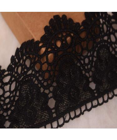 8CM Width Europe Crown Pattern Inelastic Embroidery Lace Trim Curtain Tablecloth Slipcover Bridal DIY Clothing/Accessories.(2 Yards in one Package) (Black)