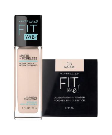 Maybelline New York Fit Me Matte + Poreless Liquid Foundation Natural Ivory 1 fl. oz. and Loose Finishing Powder Fair 0.7 Oz